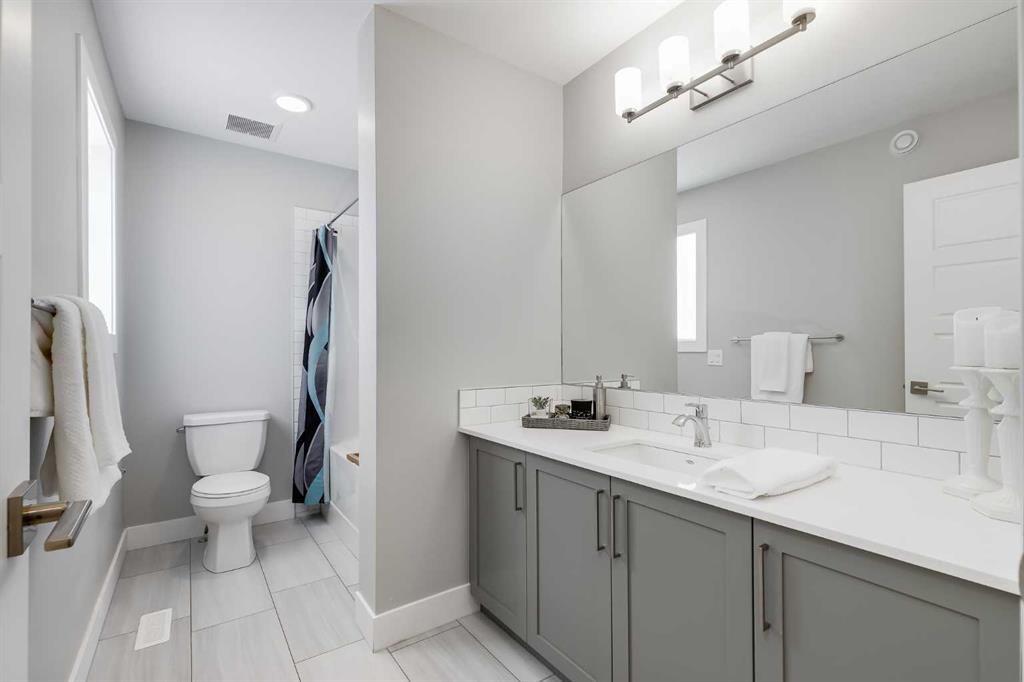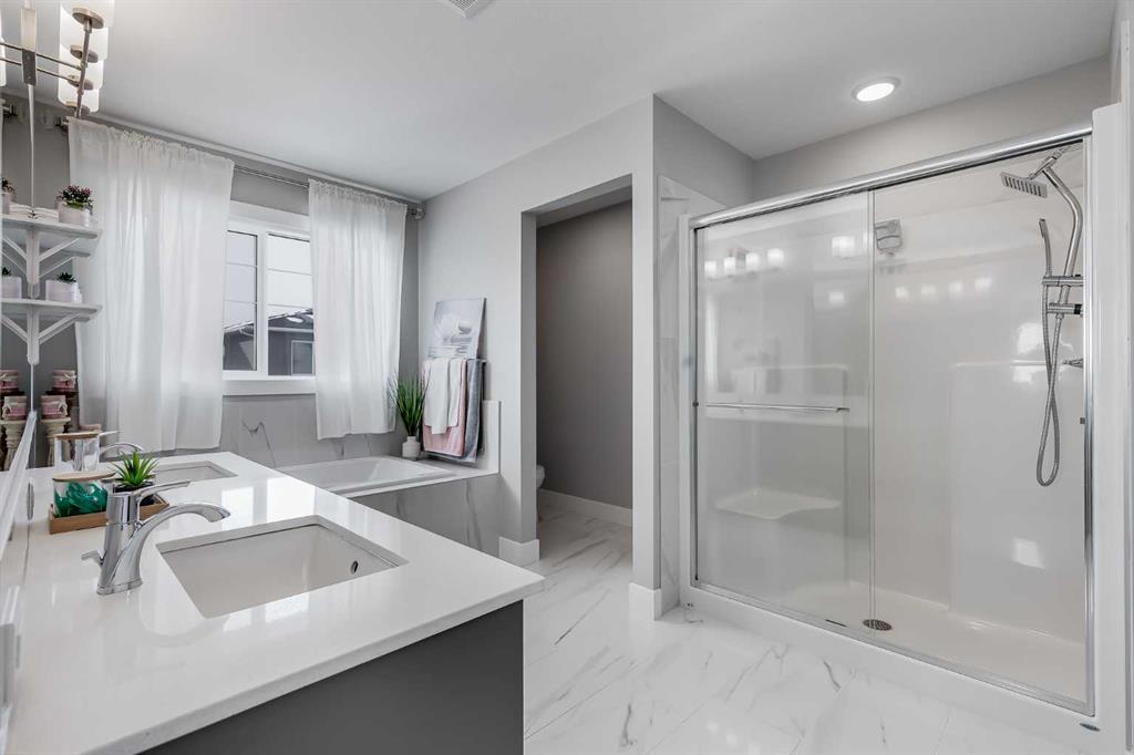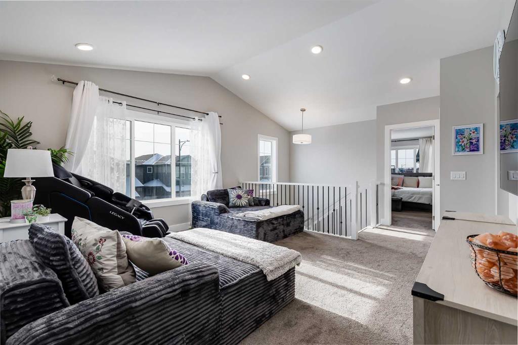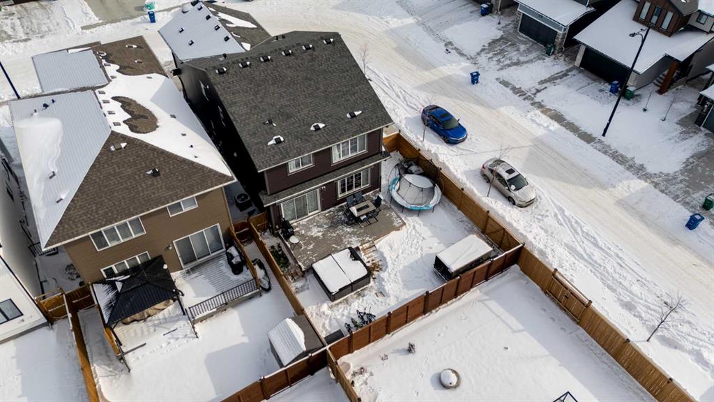 Nestled in the vibrant, family-friendly community of Chinook Gate, this home, built by Excel Homes in 2023, offers 2,375 sq ft of thoughtfully designed living space on a corner lot with a double attached garage. With serene pond views and scenic walking paths, it combines modern comfort with an exceptional location, just steps from parks, playgrounds, and all the amenities a growing family could want. Inside, a welcoming entryway with soaring 9’ ceilings sets the tone for the main floor, where luxury vinyl plank flooring and abundant natural light create an open, airy feel. A flexible front room offers a home office, sitting area, or formal dining space, adapting easily to your lifestyle. The heart of the home is the open-concept kitchen, dining, and living area. The kitchen impresses with crisp white upper cabinetry paired with grey lower cabinetry, quartz countertops, a stylish backsplash, stainless steel appliances, and a spacious island with seating. A walk-in pantry and plentiful counter and cupboard space ensure functionality meets style. The dining area accommodates family meals or entertaining, while the living space provides a comfortable place to unwind. Sliding doors open to the expansive west-facing deck, extending the living space outdoors. A powder room and mudroom complete the main level. Upstairs, plush carpeting adds comfort throughout, and the bonus room with vaulted ceiling provides a bright, versatile space for movie nights, play, or quiet relaxation. The primary retreat features a walk-in closet and a luxurious five-piece ensuite with dual sinks, a soaker tub, and an oversized shower with built-in seating. Three additional bedrooms, a four-piece bathroom, and a convenient upper-level laundry room make daily living effortless for a busy household. The unfinished basement offers a blank canvas for a future living area, home gym, or extra storage. The backyard is designed for enjoyment and entertaining. A large composite deck is perfect for barbecues, while the hot tub is a showstopper. Less than a year old, this 10–12 person “party tub” is among the largest available and doubles as a splash pool for kids during warmer months. Energy-efficient and costing less than $20 per month to operate, it’s an affordable, year-round addition for relaxation and gatherings. Additional backyard amenities include a trampoline and a gravel pad with RV parking, while a basketball hoop is positioned at the front driveway. The home also features air conditioning and a 220-volt outlet in the garage. Chinook Gate offers a lifestyle of ease and recreation. Quick access to 8 Street, Yankee Valley Blvd, and Hwy 2 makes commuting simple, while nearby schools, shopping, dining, and public transit keep daily life effortless. W. H. Croxford High School is close by, and Chinook Winds Regional Park is just steps away, featuring three playgrounds, a skate park, a spray park, multi-use courts, beach volleyball, ball diamonds, a toboggan hill, and outdoor skating in winter.