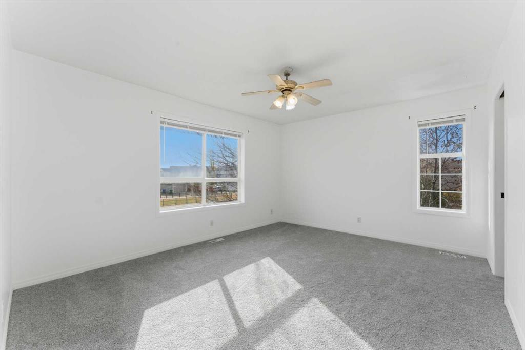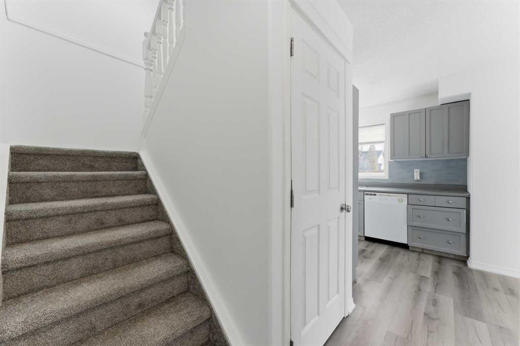 MOVE-IN READY | ATTACHED GARAGE | LOW CONDO FEES | PIE LOT | SOUTH BACKYARD | 4 BEDROOMS + 4 BATHROOMS | GOLF COMMUNITY | Beautifully refreshed and move-in ready, this family-friendly home in the sought-after golf community of Fairways offers a balance of comfort, convenience and value. The bright open-concept main floor showcases updated flooring and a neutral colour palette that complements any décor style. A spacious front living area with large windows invites natural light throughout the day, while the adjacent dining room opens through French doors to the sunny south-facing backyard, perfect for kids to play or for easy indoor/outdoor entertaining. The updated kitchen features timeless grey cabinetry, a gas stove, subway tile backsplash and a window overlooking the yard to keep an eye on the kids. A convenient powder room completes this level. Upstairs, the generous primary bedroom offers a walk-through closet that connects to a private 2-piece ensuite for added comfort. 2 additional bedrooms share a full 4-piece bathroom, providing plenty of space for growing families. The finished basement extends the living space with a large rec room anchored by a cozy gas fireplace to gather in front of and enjoy movies and games nights. Completing this level is a 4th bedroom, a 3-piece bathroom, laundry area and ample storage. Set on a pie-shaped lot with no neighbours behind, the fenced yard provides privacy with a deck for barbequing and relaxation and lots of grassy play area. Never scrape your vehicle’s windows again, thanks to the convenient attached garage with extra driveway parking. Located within walking distance of both public and Catholic schools and minutes from shopping, parks and the Woodside Golf Course, this home combines practicality with an active family lifestyle. With its low condo fees, modern updates and prime location, this home is ready for your next chapter!