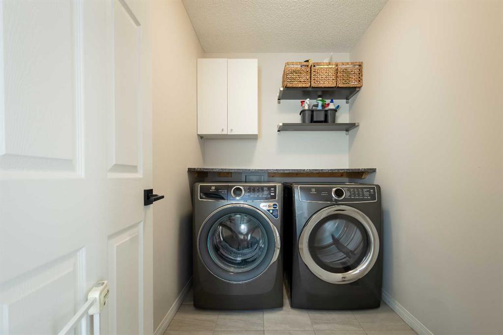 A main-floor office enjoys the glow of the dual-sided fireplace, creating a comfortable work-from-home environment. A functional mudroom provides access to the insulated, drywalled double attached garage, while the large driveway offers excellent additional parking—an added benefit of this corner unit.