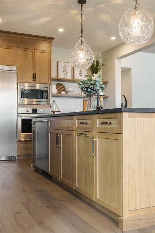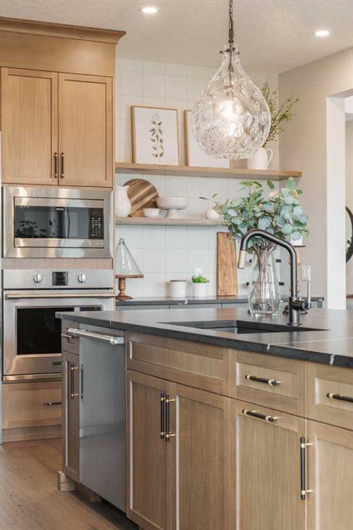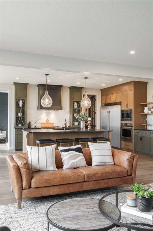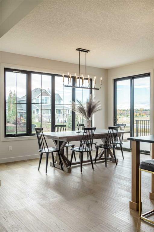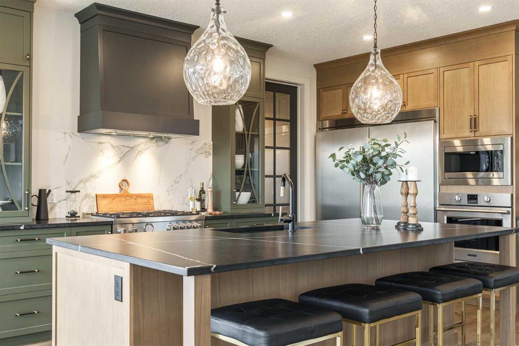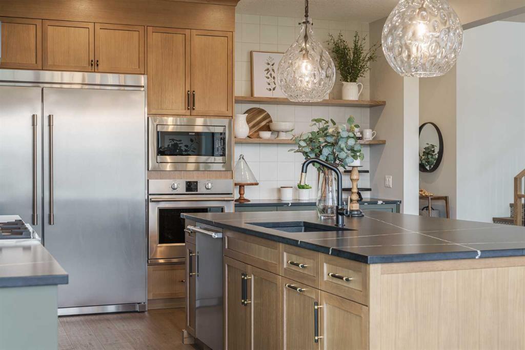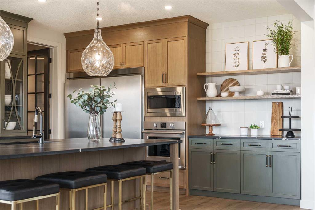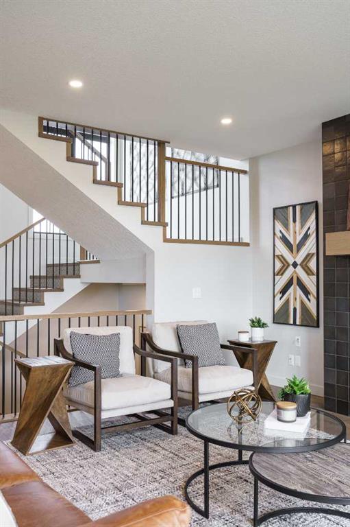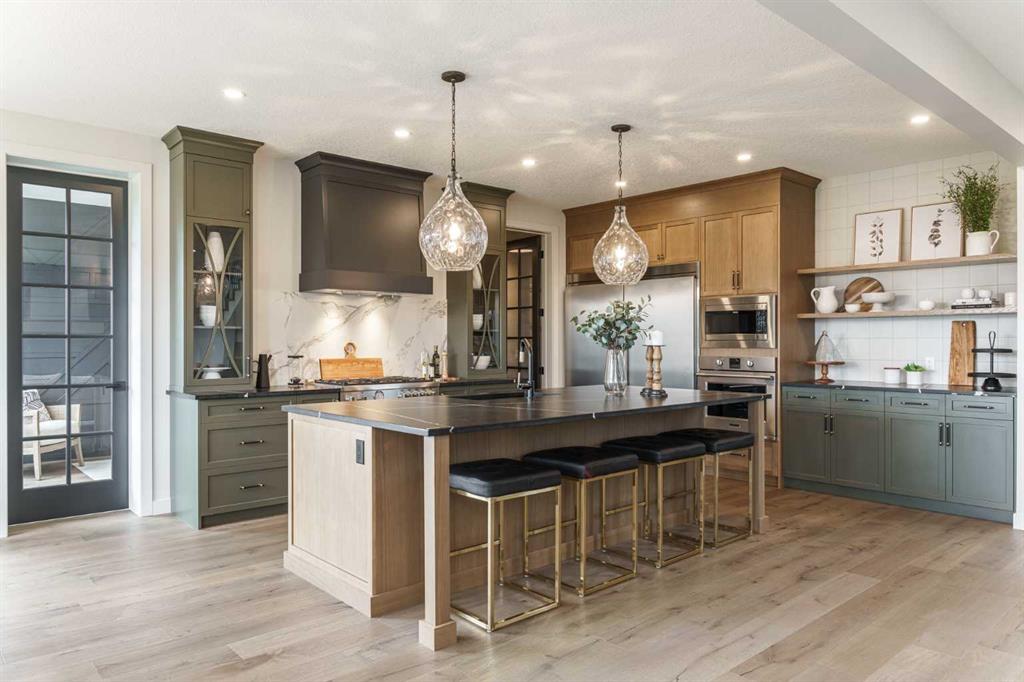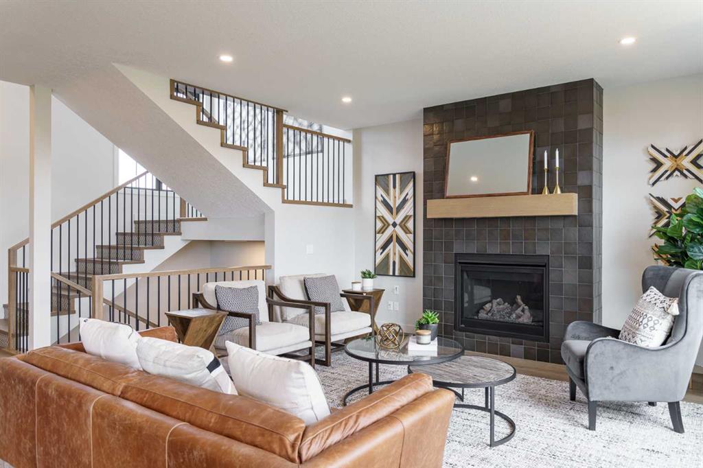 Welcome to modern estate living in the elegant community of Goldwyn—conveniently nestled between the cities of Airdrie and Calgary, just minutes from Cross Iron Mills Shopping Centre. The stunning Custom Built Georgia Model features 4 bedrooms, 4 bathrooms, and over 3,200 sq.ft. of thoughtfully designed living space, offering generous room for both family life and entertaining. Step inside and be greeted by an impressive open-to-above layout that fills the home with natural light, complemented by soaring 10-foot ceilings on the main floor. A dedicated study/computer room provides a quiet space for work or learning. The custom-designed chef’s kitchen is equipped with Stainless Steel appliances, stylish cabinetry, and a full spice kitchen—perfect for preparing meals with ease. Just off the kitchen, you’ll find a flex room, a spacious dining area, and a bright, inviting living room with fireplace, ideal for gatherings. A large mudroom and a convenient 2-piece bathroom complete the main level. Upstairs, a striking architectural staircase leads to the upper floor, where 9-foot ceilings continue the sense of openness. This level features three generously sized bedrooms, plus a luxurious primary suite with a spa-inspired ensuite that includes a custom double vanity, standing shower, and a soaker tub. You’ll also find two additional 4-piece bathrooms, a laundry room, and a versatile loft area—perfect for a lounge, home office, or playroom. Undeveloped basement will add another 1200 Sq.ft (approx.) of living space. Situated on a massive lot that backs onto green space and an environmental reserve, the home offers no rear neighbours and a peaceful natural setting. A triple car garage provides abundant space for parking and storage. Goldwyn invites you to experience refined estate living—where elegance, comfort, and serenity come together to create your forever home. *****The photos shown are from a previous show home and are for illustrative purposes only. Actual home elevation, fixtures, finishes, and features may differ and are subject to availability or change without notice.***
