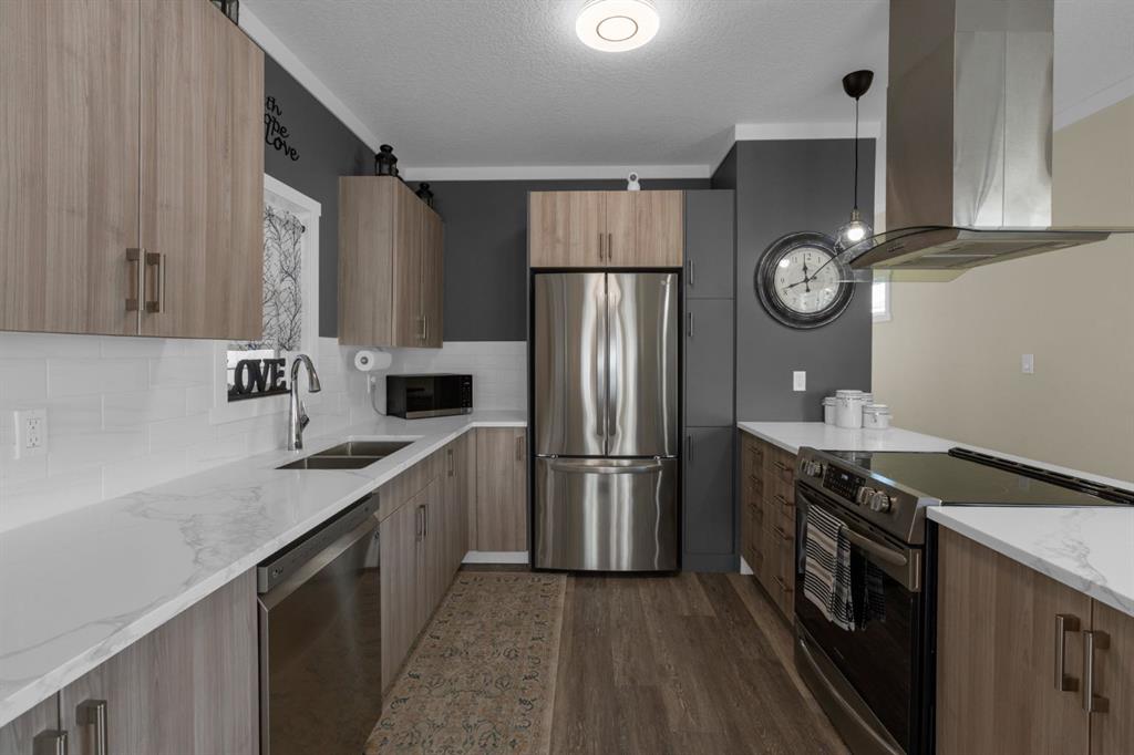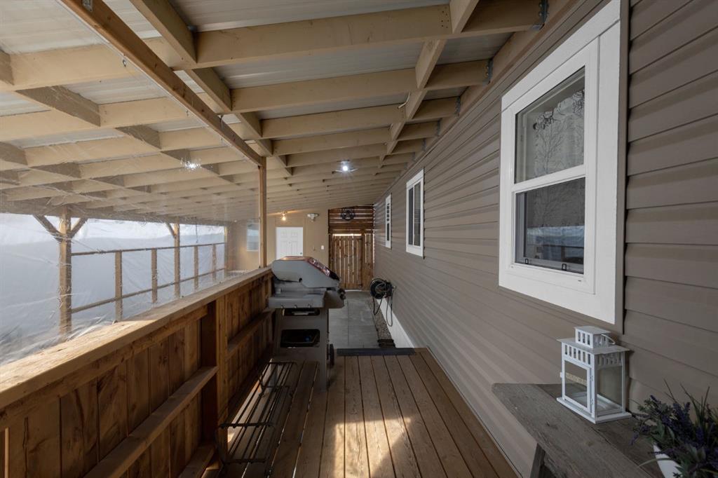 OPEN HOUSE SUNDAY NOVEMBER 9th, 12-2PM! HOME SWEET HOME! AMAZING VALUE! Welcome to this EXQUISITELY, FULLY UPDATED home situated in the FAMILY FRIENDLY mobile home community of Chateau Estates! This isn’t just any mobile home, it’s been completely gutted and FULLY RENOVATED from top to bottom. Stripped down to the metal framing, everything is new: CENTRAL AIR CONDITIONING, electrical, plumbing, soundproof insulation, geothermal wrap, and more. Step inside and you’ll immediately see the care and craftsmanship that went into this home. The open concept layout features gorgeous vinyl flooring and a bright, open concept living/dining area that flows into a dream kitchen. With quartz countertops, plenty of storage, and sleek high end LG ThinQ appliances, this kitchen is both functional and beautiful. The first bedroom makes an ideal kids’ room, guest space, or home office. The bathroom is thoughtfully designed with double vanities, tons of storage, and a combined laundry area with more than enough room for your needs. The primary bedroom is spacious and inviting, easily fitting a king size bed with room to spare for dressers. Built-in wardrobes keep everything organized, and the cozy electric fireplace adds warmth on cooler nights. From here, step out to your private back patio, perfect for relaxing evenings. Best of all, there are no neighbours behind you, so you can enjoy peace and privacy. HIGHLIGHT UPGRADES include: 8 foot rear expansion; 9 foot ceilings; 2x6 construction with R22 insulation in walls; Metal roof & new windows; 2” insulated skirting; New vinyl siding with thermal wrap for energy efficiency. Outside, you’ll find a large covered carport, a 10' x 14' insulated powered shed/workshop, plus an additional storage shed for all your seasonal items. A separate RV parking spot is also available with this property which is adjacent to the community. This home shows like a brand new home with every update already complete. All you need to do is move in and enjoy. Don’t miss out! Book your showing today before it’s gone!