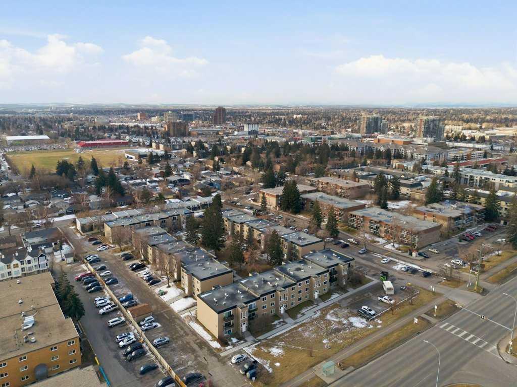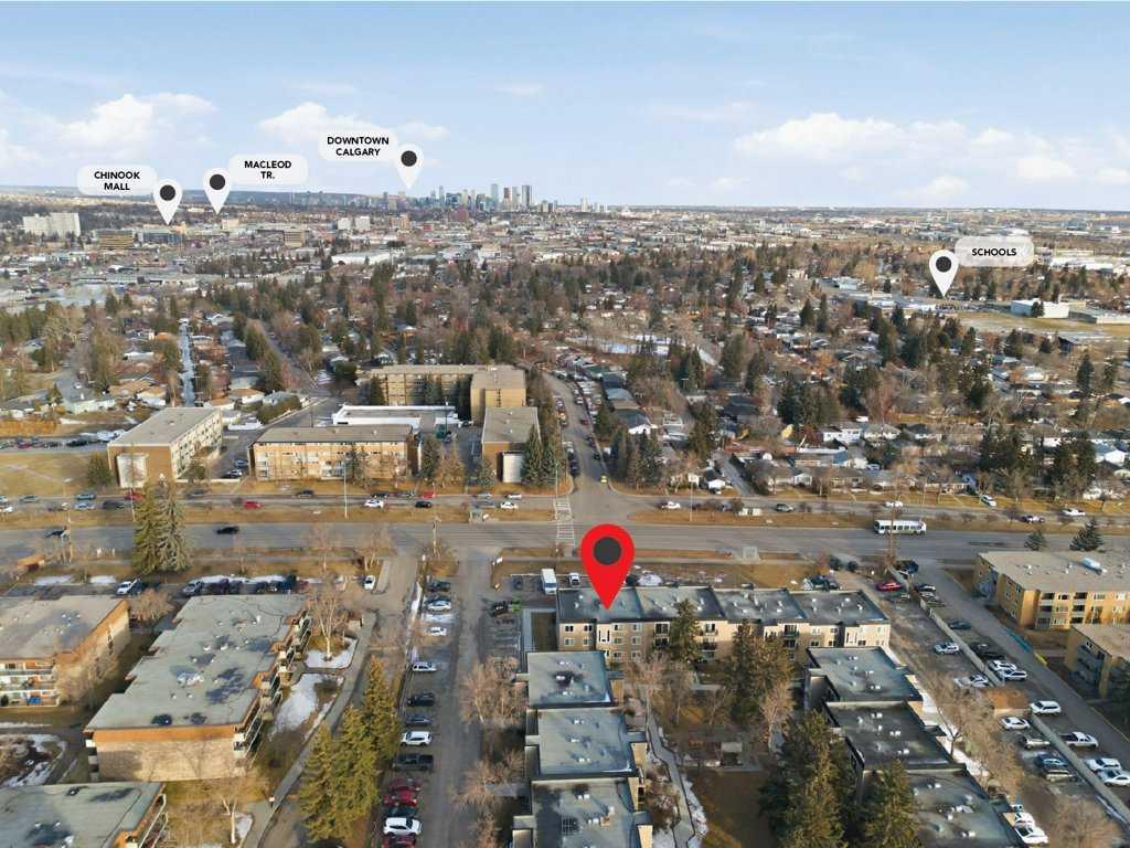 TOP FLOOR UNIT IN ACADIA offering approximately 869 sq. ft. of smartly designed living space with extensive renovations throughout. This two bedroom, one and a half bathroom condo delivers exceptional function, privacy, and flexibility—ideal for first-time buyers, downsizers, or investors. Step inside to discover easy care, water resistant laminate flooring throughout and a thoughtfully designed layout with generous room sizes and excellent storage. The professionally renovated kitchen features granite countertops, a modern tiled backsplash, stainless steel appliances, and custom built-in cabinetry that adds valuable extra storage with pull-out shelving. The spacious great room flows to a private balcony through sliding doors, while the well-sized dining nook easily accommodates a large table—perfect for entertaining. The updated 4-piece main bathroom showcases a modern tiled tub/shower surround and new vanity. A rare and desirable in-suite laundry room adds everyday convenience not found in all units. The primary bedroom offers a walk-in closet and private 2-piece ensuite, while the second bedroom is generously sized—ideal for guests, roommates, or a home office. This well-managed complex has seen substantial exterior upgrades, enhancing long-term value and curb appeal. In 2017, major improvements included a new roof, doors, Hardie Board siding, and common area updates. In 2020, all exterior walkways and entry areas were replaced with new concrete, providing a refreshed and well-maintained appearance. One assigned parking stall is included. Located in the established community of Acadia, this home offers outstanding access to local shops, services, schools, parks, and Heritage LRT Station. A true standout in a quiet, well-maintained complex, this move-in-ready unit showcases thoughtful upgrades, added functionality, and exceptional value.