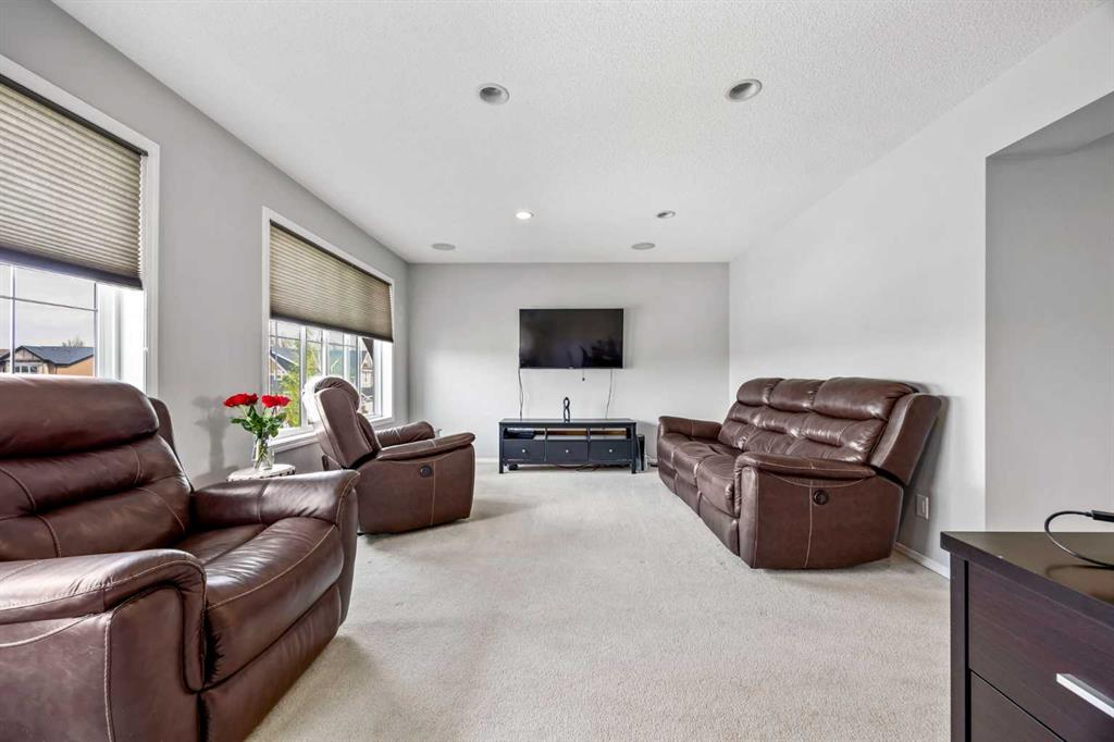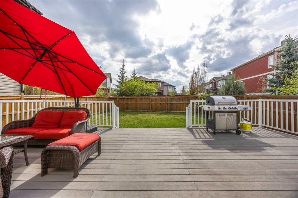 Welcome to your new home in the highly sought-after lake community of Auburn Bay, where lifestyle and comfort come together in perfect harmony. This beautifully maintained detached home with a double attached garage offers more than 3,000 sqft of thoughtfully designed living space, perfect for families! Step inside to discover 9-foot ceilings and hardwood flooring throughout the sun-soaked main level. At the front of the home, a dedicated office space features a built-in double desk with ample storage cabinets and drawers—ideal for remote work or study. The open-concept kitchen, living, and dining areas are bathed in natural southwest light from large windows that create a warm, inviting atmosphere. The kitchen boasts stainless steel appliances—including a brand-new microwave and dishwasher—quartz countertops, a central island, ample cabinetry, and a walk-through pantry connecting to the main floor laundry room with side-by-side washer and dryer and access to the garage. The three-sided fireplace serves as a stylish focal point, beautifully separating the living and dining spaces—perfect for entertaining guests or enjoying cozy family evenings. You’ll also appreciate the built-in speakers on the main floor, elevating your everyday living and hosting experiences. Step outside to a spectacular backyard oasis featuring an oversized, low-maintenance composite deck with built-in outdoor speakers. Situated on a generous lot, this sunny retreat offers all-day enjoyment and is ideal for summer barbecues, relaxing, or watching the kids play. Upstairs, the spacious primary suite overlooks the backyard and features a spa-inspired ensuite with a soaker tub, glass-enclosed shower, private water closet, large vanity, and a walk-in closet. Two additional bedrooms—one with its own walk-in closet—share a 3-piece bathroom. At the front of the home, the bonus room provides panoramic views of the green space and playground across the street and includes built-in ceiling speakers for added comfort and style. The fully finished basement offers incredible flexibility with a fourth bedroom and a large recreation room, currently would be a great set up as the ultimate home gym—but easily adaptable for a media room, play space, or guest retreat. Living in Auburn Bay means enjoying one of Calgary's premier lake communities, complete with exclusive resident access to the private lake, sandy beach, tennis courts, parks, and year-round recreational opportunities. With proximity to schools, South Health Campus, shopping, and Seton Urban District, you'll enjoy both tranquility and convenience.