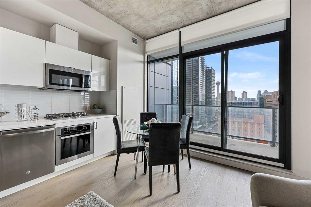 Experience the ultimate in urban living at Calgary's 6th and Tenth, situated in the heart of the vibrant Beltline district. This striking high-rise combines sleek, modern design with an unbeatable location, making it an exceptional opportunity for both homeowners and investors. With Calgary’s condo market experiencing an impressive 18% year-over-year growth—and no land transfer tax—this property offers a compelling value proposition. This unit is a thoughtfully designed 415 sq ft one-bedroom, one-bathroom condo, with east-facing orientation captures breathtaking views of the iconic Calgary Tower and the downtown skyline. Floor-to-ceiling windows fill the space with natural light, creating a warm and inviting atmosphere throughout the home. The interior showcases a modern-industrial aesthetic, featuring exposed 9-foot concrete ceilings and walls that add a distinctive edge to its contemporary style. Despite its compact size, the unit is remarkably functional, with every square foot optimized for comfort and usability. Central air conditioning ensures year-round climate control, adding to the overall sense of ease and livability. Residents of 6th and Tenth enjoy access to a suite of premium amenities, including a state-of-the-art fitness center, an expansive outdoor terrace with a swimming pool, and a stylish shared kitchen and party room—perfect for entertaining or relaxing with friends. The building also allows short-term rentals such as Airbnb and Vrbo, offering additional flexibility and income potential for investors or part-time residents. Whether you’re searching for a chic urban residence or a smart investment property, this unit delivers exceptional value in one of Calgary’s most desirable neighborhoods. Don’t miss your chance to own a piece of this dynamic and fast-growing urban landscape. Contact your real estate professional today to learn more about this remarkable opportunity.