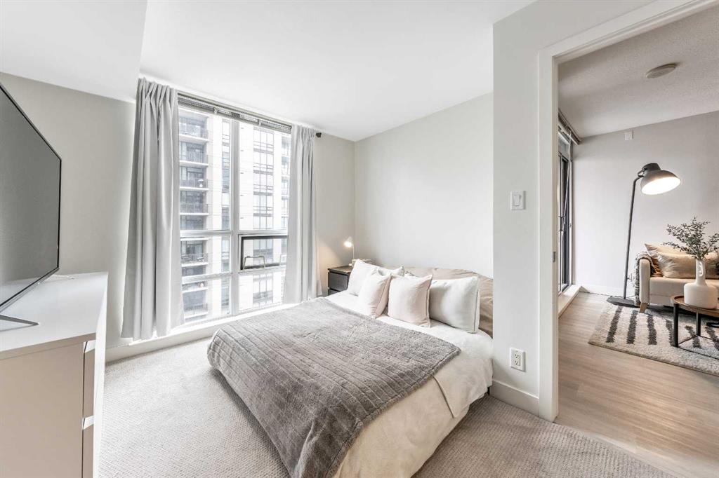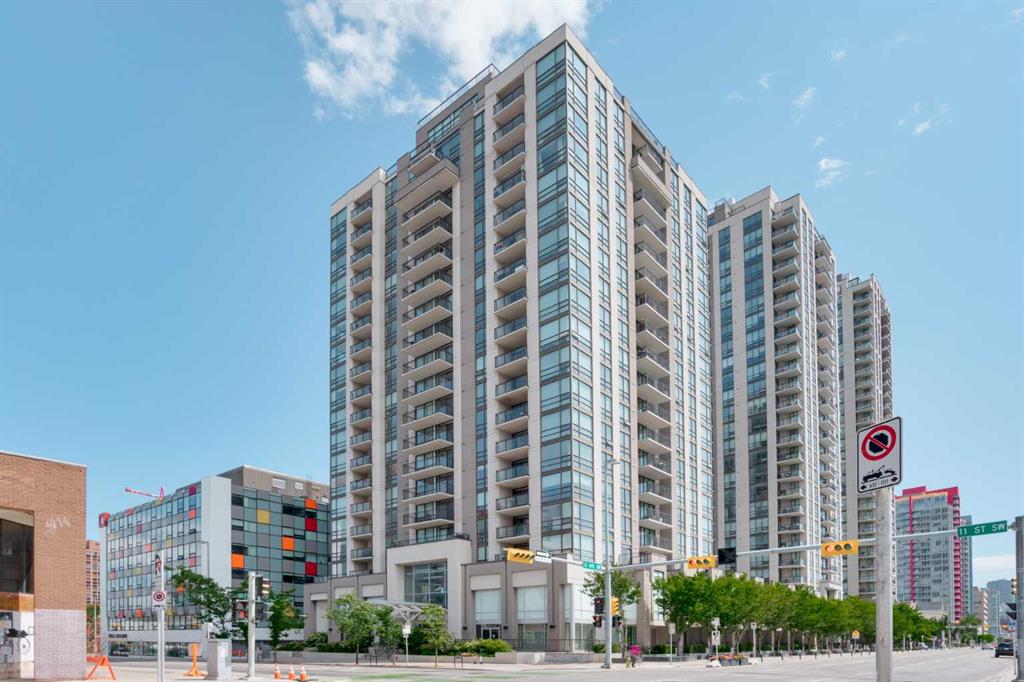 A bright and thoughtfully designed 1-bedroom condo offering incredible value in one of downtown’s most walkable locations. This modern home features an open-concept layout, floor-to-ceiling windows, and a private balcony with sweeping city views. The kitchen includes sleek cabinetry, stone counters, and a full appliance package, while the spacious bedroom easily accommodates a queen bed and offers great closet space. Enjoy in-suite laundry, underground parking, and access to outstanding building amenities including a fitness centre, concierge service, residents’ lounge, and secure bike storage. With dining, groceries, the river pathways, and the C-Train all steps away, this is urban living at its best. Perfect for first-time buyers, investors, or anyone seeking a low-maintenance lifestyle in the heart of Calgary.
