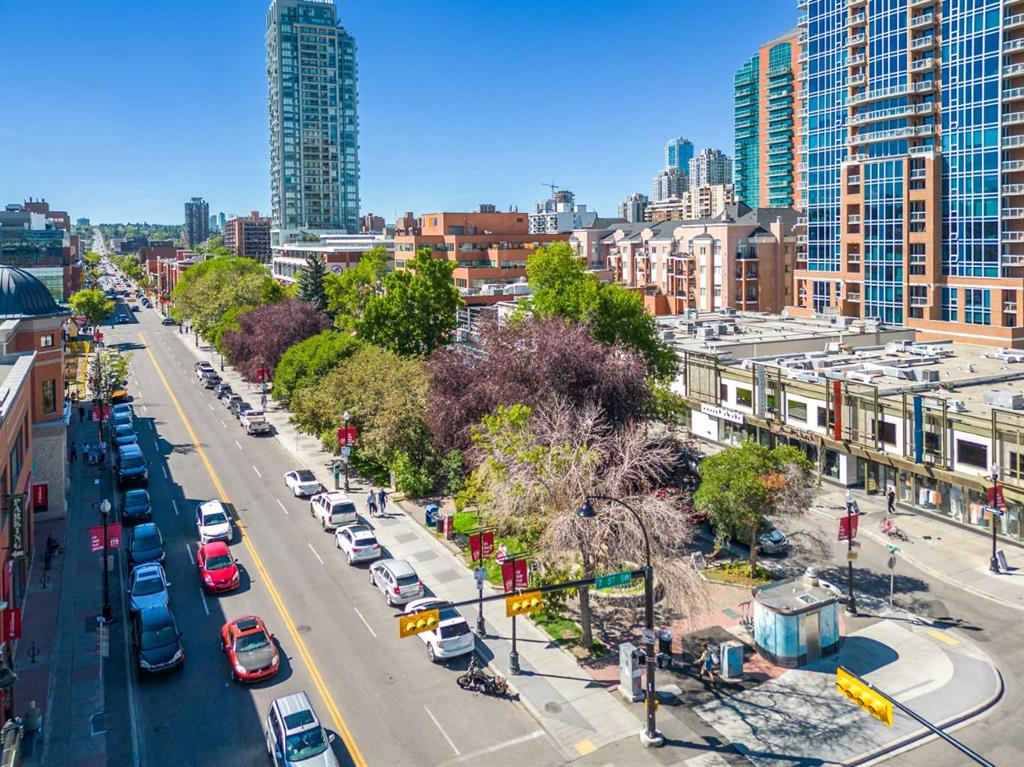 It's a CHRISTMAS MIRACLE: A million dollar view AND underground parking at Drake for under $260K! Sitting 150 feet up in the air looking out to the sparkling downtown skyline, you will feel right at home in this contemporary condo. Perfectly situated a block from 17th Avenue, providing instant access to all of the best restaurants, pubs, cocktail bars + coffee shops Calgary has to offer. Step inside to find an open concept floor plan, art feature wall, wood flooring + large windows. The fashionable kitchen shines with granite counters, stainless steel appliances, dark cabinetry + tile backsplash. Loads of great smart storage options throughout the space and also comes with in-suite laundry plus that coveted underground parking stall. Boasting a rare perfect Walkscore of 100, there is little convincing needed that this prime + central location is at the heartbeat of our city. Whether you're stepping into homeownership or strengthening your rental strategy, this condo delivers big value for a small cost.