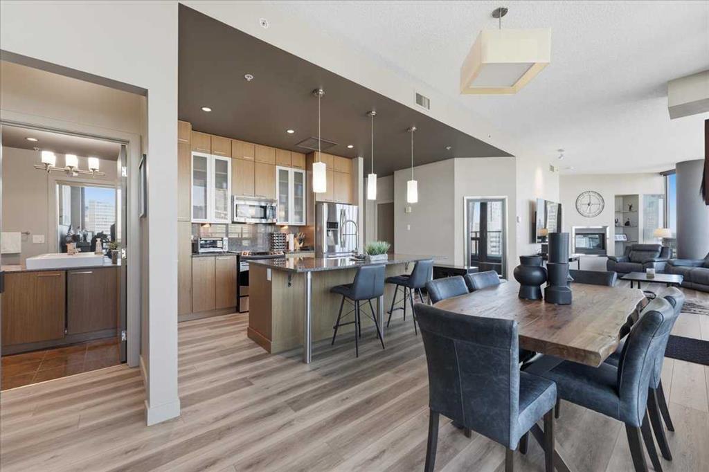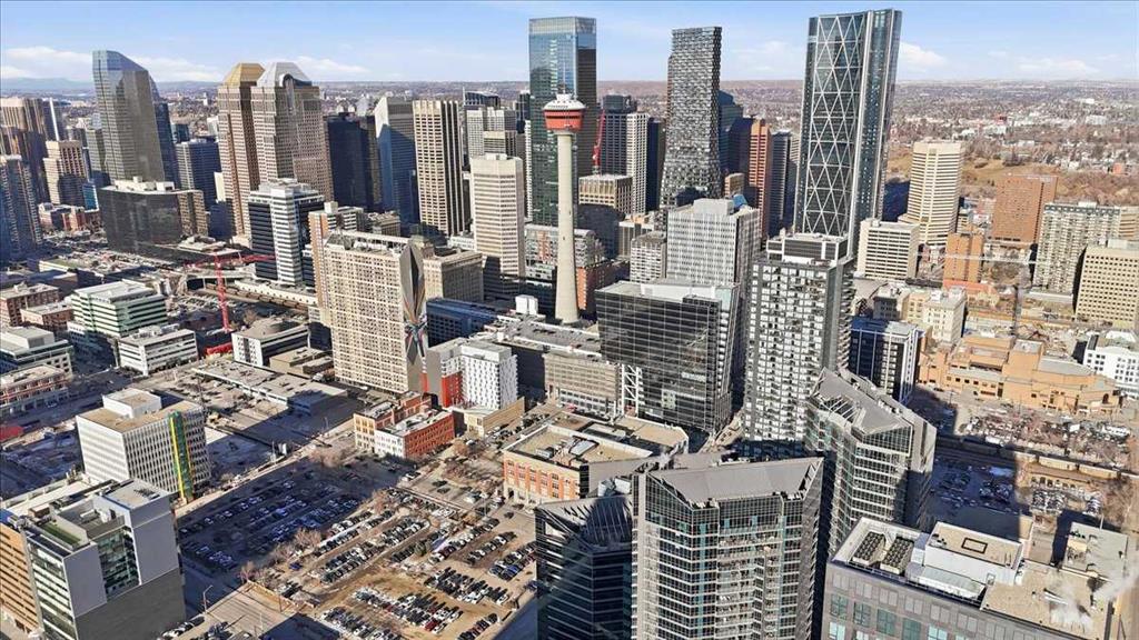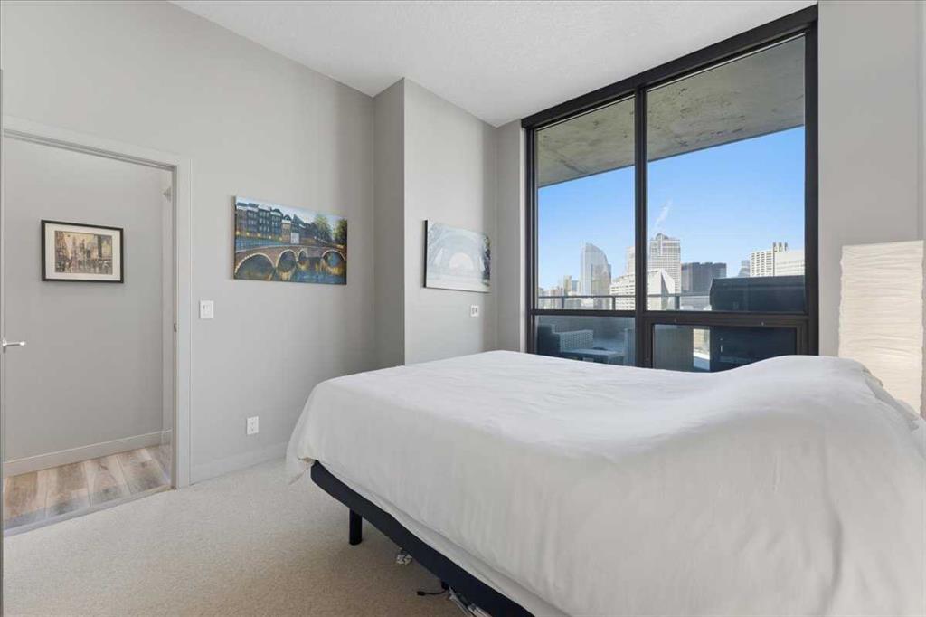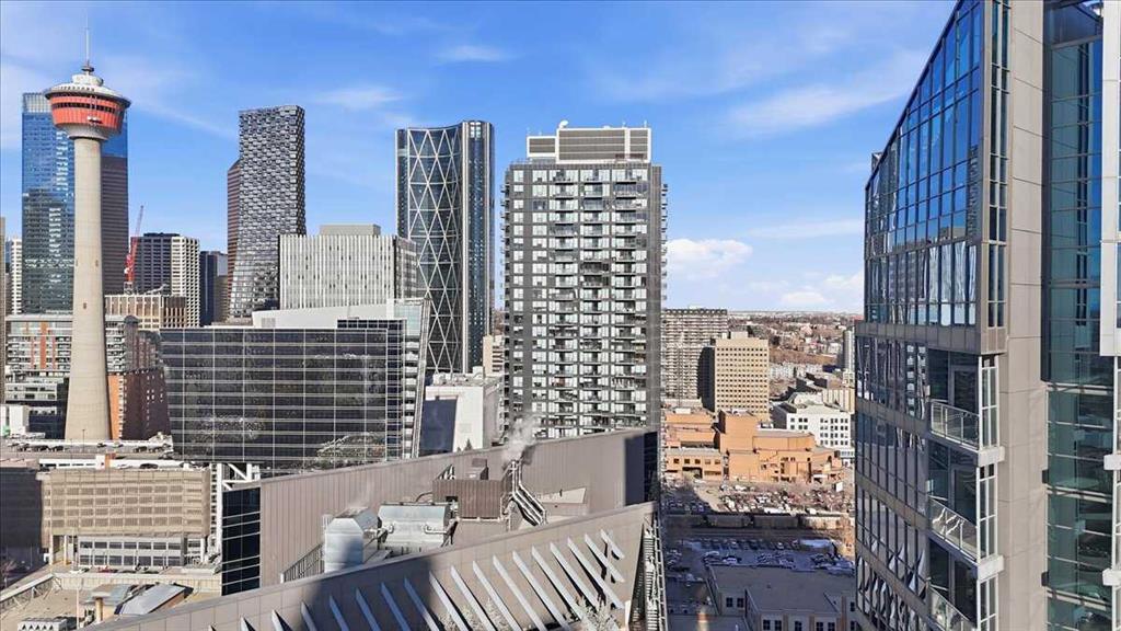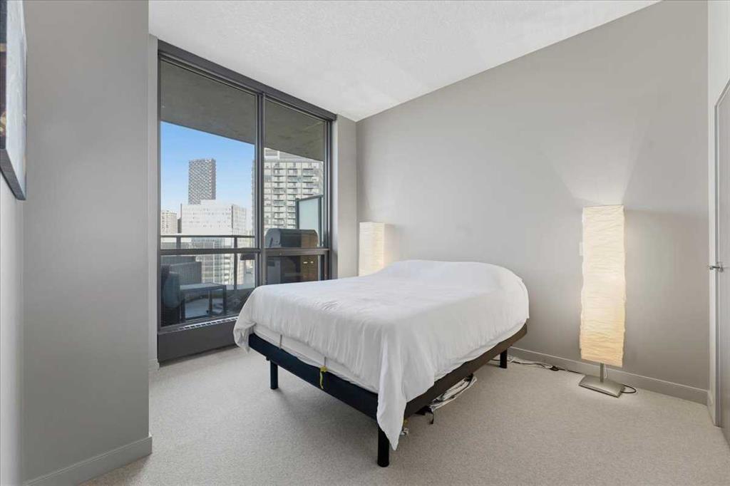 Situated in the heart of Beltline, Keynote One offers ultra convenient downtown living just steps to Stampede Park, BMO Centre, and Calgary's Saddledome. This Sub-Penthouse unit offers soaring floor to ceiling windows, OVERSIZED balcony, additional second balcony off the master bedroom, with breath-taking views of the cities' skyline. One of the rare chances to own a unit offering TWO TITLED VIP parking stalls right next to the elevator. Upgrades include new Vinyl Plank flooring, washer/dryer, water filtration system (ion filter), and new sink. Open concept, modern and industrial describe the vibe of this layout featuring TWO bed / TWO baths, boasting unbeatable privacy and functionality. Lie in your master retreat, enjoy the two-way fireplace, soak in the first- class views of the Calgary Tower and city skyline. Feel the grandness of the master ensuite with second balcony, double sinks, separate shower, massive tub, and OVER-SIZED double walk -in closet with custom California Closet built -ins. Keynote offers an on-site manager, access to the fully equipped fitness facilities (weights and cardio room), two guest suites, owner’s lounge with TVs, pool table, partial kitchen, BBQs, outdoor patio, plus 15 rooftop oasis, bike storage, and direct access to Sunterra Market. This unbeatable location offers high-quality living, the Plus 15 Skywalk system, and easy access to main thoroughfares for city-wide access. Weather you are looking for your next home or a prime investment opportunity, this is downtown living done right.