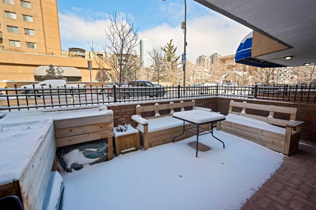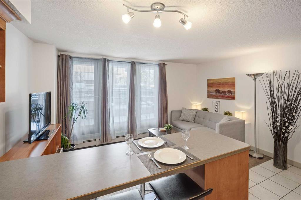 This BRIGHT END-UNIT, 1 bedroom + 1 bathroom MAIN FLOOR condo offers MOBILITY-FRIENDLY access & an EXCEPTIONAL OUTDOOR LIVING SPACE rarely found in inner-city condos. Featuring TILE & LAMINATE flooring throughout, the open-concept layout connects the kitchen & living area for easy everyday living & entertaining. The kitchen peninsula includes BUILT-IN DINING, maximizing both functionality & space. FRESHLY PAINTED throughout the main living area, the home also offers excellent storage including a large walk-in closet off the entry plus a separate closet with IN-SUITE LAUNDRY offering additional storage. The spacious bedroom features two LARGE WINDOWS, a generous closet, & a flexible nook ideal for a desk, or dresser. The 4-piece bathroom is finished with tile flooring for a clean, modern feel. Step outside to one of the condo’s standout features—an incredibly LARGE PATIO complete with RAISED GARDEN BOXES & plenty of space for lounging, BBQing, and OUTDOOR DINING, creating a true extension of your living space. Additional highlights include SECURED GATED PARKING, a separate STORAGE LOCKER, & dedicated BIKE STORAGE. Located in the heart of the Beltline, you’re just steps from restaurants, cafes, shopping, parks, and downtown amenities, making this an ideal home for first-time buyers, investors, or anyone seeking vibrant inner-city living.