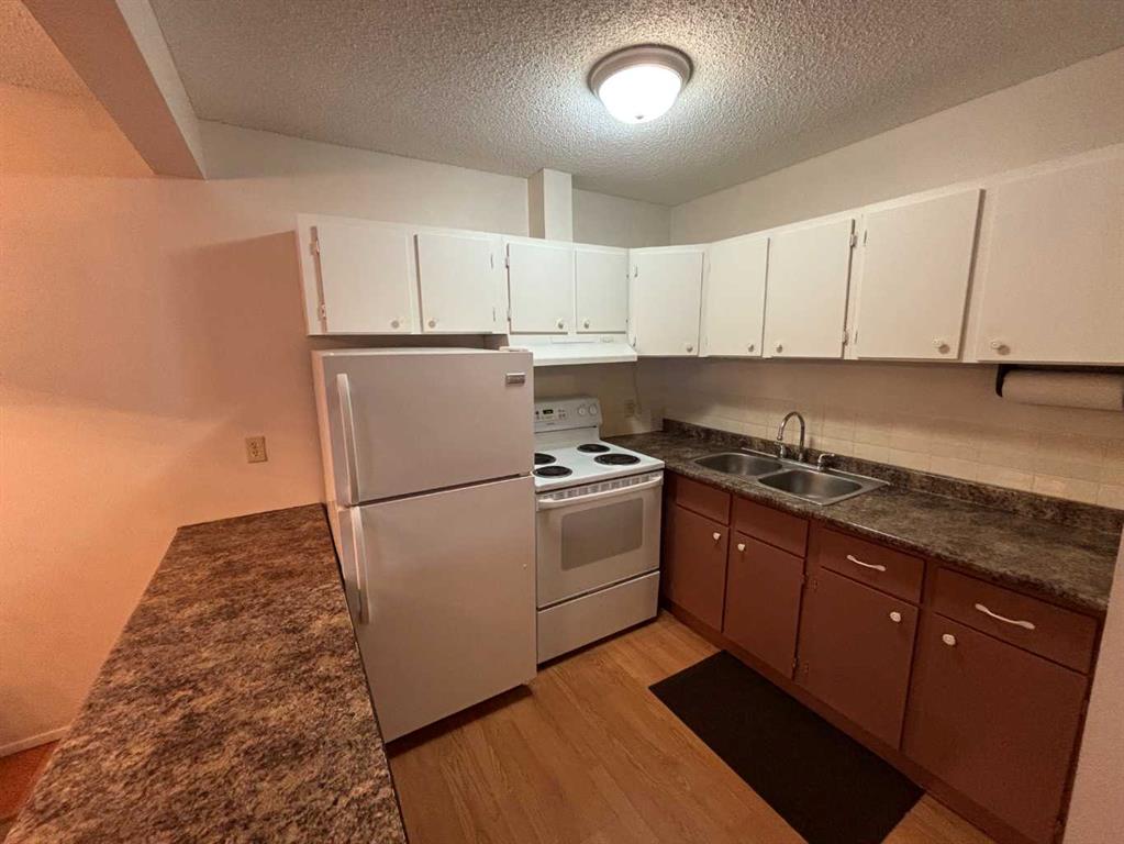 This 2 bedroom bungalow style condo is an end unit, backs onto green space (bedrooms-nice and quiet) and is located within walking distance to shopping, public transit, schools and playgrounds. This awesome location features a short drive to South Glenmore Park, Glenmore Landing, Southland Leisure Centre, Heritage Park, Rockyview Hospital, Southcentre Mall, and many other services and amenities. The open layout features a sizeable living room, dining room and kitchen with ample countertops and cupboard space, fridge, stove and hood fan. The large utility room includes laundry and storage and features shelving, washer, dryer and freezer. There's a full bathroom, hallway storage with shelving, primary bedroom with walk-in closet and second bedroom. The furnace and hot water tank were both replaced in September 2024. The condo comes with an assigned parking stall (#511).