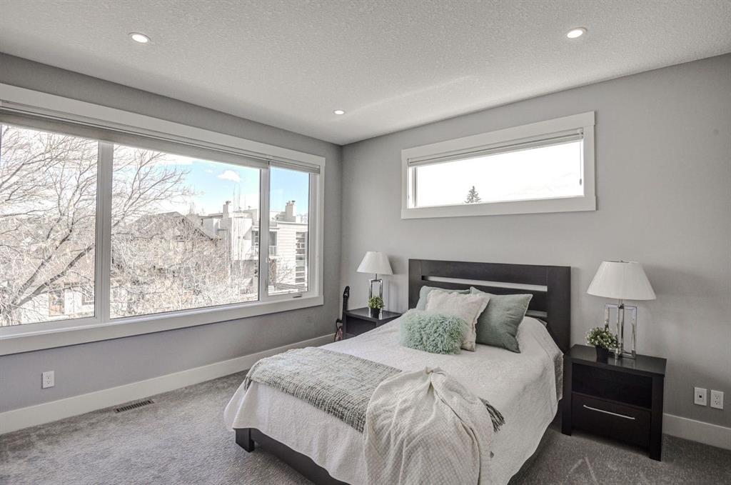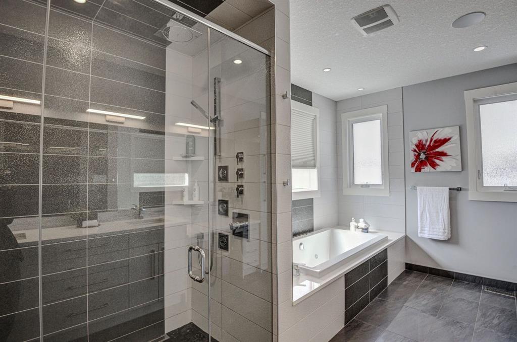 Step into luxury living with this meticulously crafted masterpiece situated on a mature tree-lined street in the highly sought after community of Bridgeland. Where modern contemporary style meets quality luxury living. Your new home offers over 4,500 square feet of impeccably designed space. Upon entering, be greeted by the timeless elegance light oak hardwood floors which guides you through a space built for entertainment & relaxation. You will appreciate the open concept living area, wall to wall windows taking in the natural light of your private back yard. Adjoining the living area is the gourmet kitchen, featuring top-of-the-line appliances, including a side-by-side freezer & fridge, gas range. dishwasher, wall oven, a built-in coffee machine, and two sinks. A spice kitchen with beverage fridge facing the walk-in pantry. Ample cabinetry. Elegant waterfall style quartz island completes the need for functionality & style. Host unforgettable family gatherings, from this beautiful space through to the floor to ceiling sliding patio doors, onto a private large upper deck with Pergola, or retreat to the lower patio for a dip in the hot tub. Upstairs you will find the primary bedroom to be another true retreat. Boasting of a 9-piece ensuite oasis with double sinks, a makeup station, a luxurious soaker tub, a full tile & full body shower, and a spacious walk-in closet. Each of the additional bedrooms boasts to have their own bathrooms, providing comfort and convenience. No expense was spared in the laundry room, plenty of storage counter space and sink. Venture downstairs to discover a haven for recreation and relaxation, featuring a sizable recreation room ideal for movie nights with a fantastic surround sound system. Enjoy another 6-piece steam shower set up & a fourth bedroom. The fully developed space includes incorporating the open staircase design from top floor to bottom. There is so much more to this home, all bathrooms have heated floors for your comfort as well as the complete multi zoned heated basement floors. With one of the largest level lots in the community, this west-facing backyard offers ample space to create your private outdoor sanctuary complete with underground sprinkler system & a heated triple car garage. There is so much more to discover with this quality built & well maintained home. Don't miss the opportunity to make this exquisite home yours—schedule a private tour with your favorite realtor today. You’ll be glad you did!
