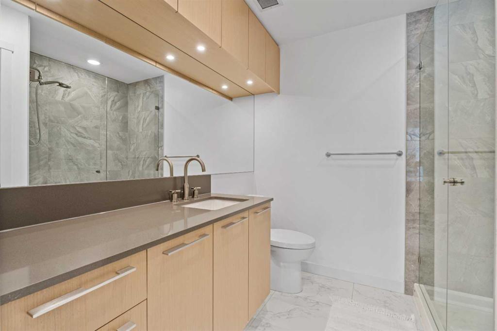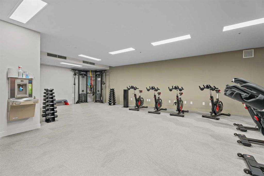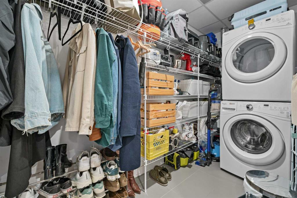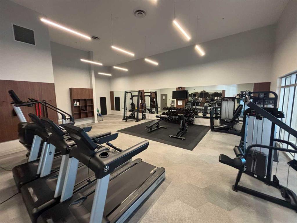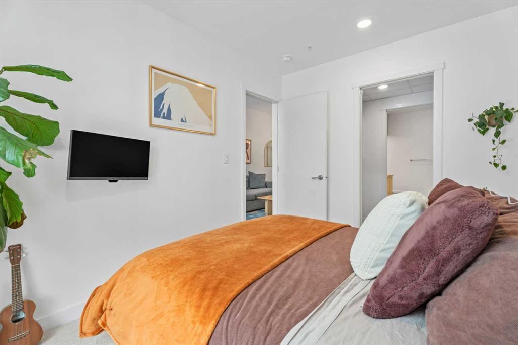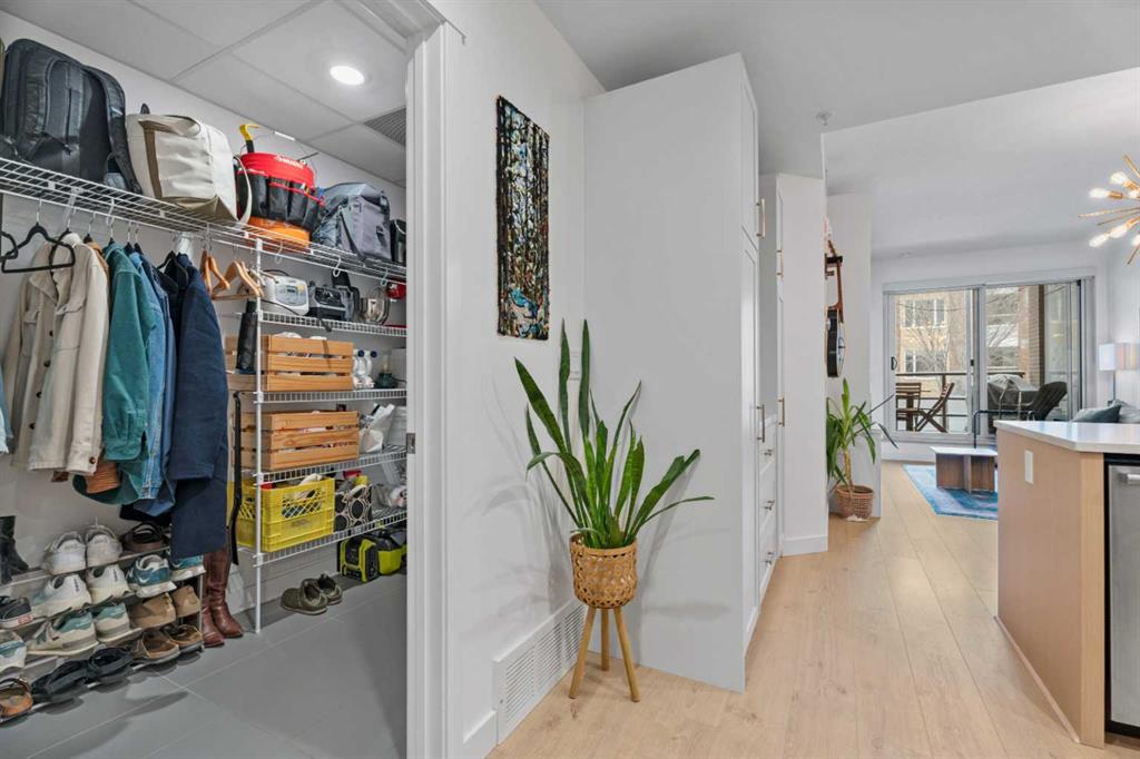 OPEN HOUSE 3-5pm SUNDAY April 19 - Welcome to Radius, an amenity-rich building offering something for every lifestyle, located in the desirable neighbourhood of Bridgeland. This spacious and extensively upgraded 2-bedroom, 2-bathroom unit features modern finishes and a bright, inviting atmosphere with a soft contemporary design. The well-appointed kitchen includes a built-in oven, gas range, ample counter space, and quality appliances, flowing seamlessly into the open-concept dining and living area complete with beautiful custom built-ins for storage and media. The generously sized primary bedroom offers a walk-in closet with California Closets organizers and a stylish ensuite with automatic floor lighting, a large vanity, and a walk-in shower. The versatile second bedroom is equipped with built-in storage and a Murphy bed with integrated desk attachments, making it ideal for guests or a functional home office. Additional highlights include a rare oversized in-suite storage and laundry room, along with a well-appointed 4-piece main bathroom. Residents enjoy access to exceptional building amenities including concierge and the main gym (1st floor), delivery room (2nd floor), secondary gym (3rd floor), yoga/barre room (4th floor), spin room (5th floor), rooftop patio and gardens with stunning city views (7th floor), dog wash station and bike storage (P1). This unit also comes with titled underground parking, and a dedicated storage room, offering convenience and comfort in one of Calgary’s most vibrant communities.