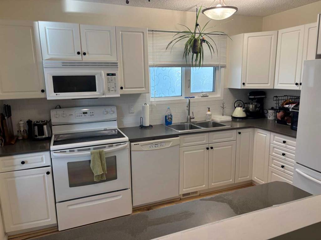 excellent upgrades of KITCHEN, DINING, LVING AREAS, BATHROOMS, & 4 bedrooms!! Fantastic location, quick Ring road access, Transit near, kids are within 2 blocks of schools & community parks & playgrounds, Bike paths convenience store & shops near... FURNACE 2009, WINDOWS & PATIO DOORS IN 2010, FLOORING & ROOF SHINGLES in 2013... KITCHEN & DINING AREAS are OPENED & UPGRADED....ENLARGED FRONT PRIVATE BALCONY . 2 PARKING STALLS in the back with Lane access & plenty of parking in the front. Inviting Great Room with the Corner fireplace. LARGE WINDOWS in the Lower level with the bedrooms in the back & the front recreation room & a second full bathroom that has the potential of a suite in the future....