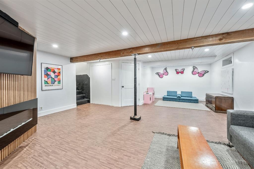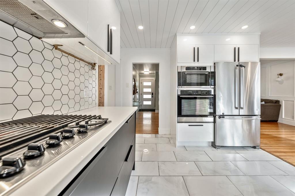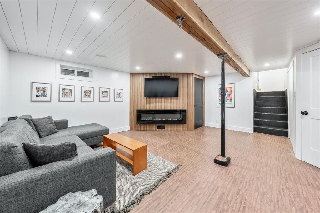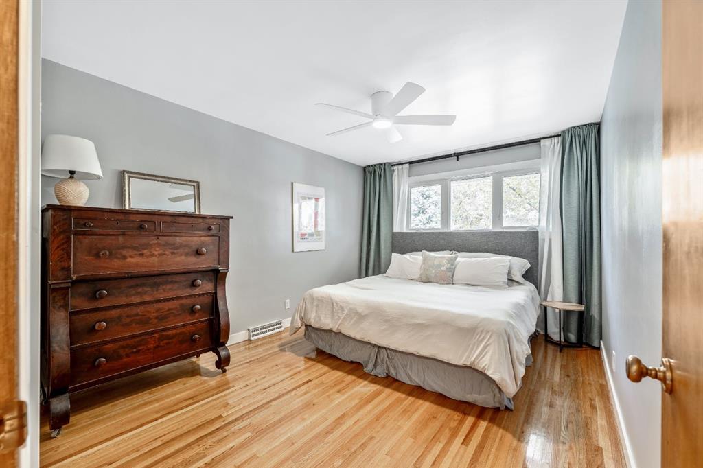 Open House: Sat, Oct 25, 2-4 pm | Charleswood Charm with Stylish Updates! | Nestled on a peaceful, tree-lined street right in the heart of Charleswood, this beautifully updated four-level split is the perfect mix of charming character, modern convenience, and a welcoming, family-friendly community. With over 1,950 square feet of thoughtfully developed space, this home has been lovingly upgraded over the years to be both warm and stylish, and mechanically efficient. Step inside and you'll be greeted by gorgeous hardwood floors, rustic shiplap ceilings and wood panelled walls, and a bright, open-plan living space that feels inviting and effortlessly livable. The sleek designer kitchen is a dream for busy family life, with two-tone modern cabinetry, quartz countertops, stainless steel appliances, and plenty of counter space. The adjacent dining and living areas are both spacious and flexible, filled with natural light that creates a cheerful and homey vibe. Upstairs, you’ll find three comfortable bedrooms and a beautifully updated family bathroom. The lower level has a versatile fourth bedroom (or home office) along with an updated three-piece bathroom and fabulous dual purpose laundry-mudroom that keeps everything organized and the mess at bay. Check out the cozy family room in the lower level, with a stylish electric fireplace complimented by a wooden slat wall, and additional flexible space that’s perfect as a play space or exercise area. Out back, the south facing backyard feels like your own private oasis—complete with mature, fruit-bearing trees, lush landscaping, and enough space for outdoor fun and entertaining. The home also features a heated double detached garage in addition to the single attached garage, giving you plenty of parking and storage options. Located in one of Calgary’s most desirable NW neighbourhoods, you’re just minutes from the University, K-9 schools, parks, pathways, and all the amenities you could need. Don’t miss your chance to own this beautifully updated charmer in ever-popular Charleswood!