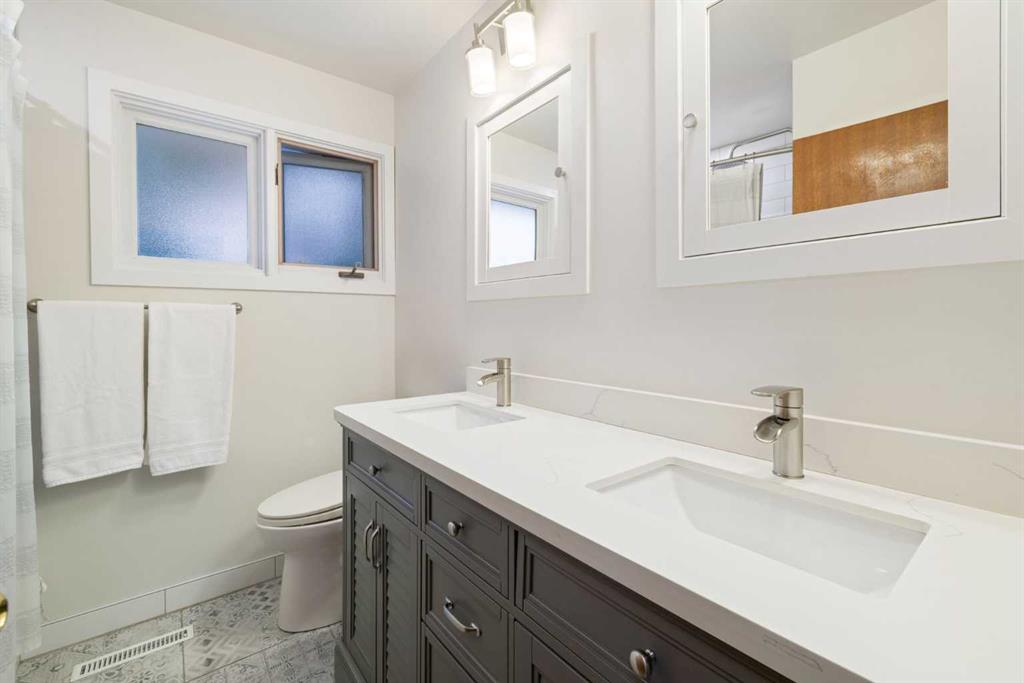 Ideally located in the highly desirable community of Charleswood, this charming family home is just minutes from several green spaces, parks, all levels of schools, the University of Calgary, and shopping. Nestled in one of the quietest, least-traveled pockets of the neighbourhood and surrounded by mature trees and long-standing family homes, this is your opportunity to become part of a truly special community. Set on a 60-foot frontage lot, the property features a heated and insulated double detached garage with new polyaspartic flooring, a multi-level deck that is partially covered (BBQ year round), RV parking beside the garage, and a private backyard that feels like a hidden retreat—so peaceful, you’ll forget you’re in the city. With over 2000 sf of developed space, the main floor offers a spacious living room with a large south-facing picture window, a cozy gas fireplace, and an easy flow into the adjoining dining room. Sliding doors from the dining area lead directly to the deck and backyard. The bright, upgraded kitchen overlooks the backyard, making it easy to keep an eye on the kids while preparing meals. Upstairs, you’ll find three generously sized bedrooms with ample closet space, all sharing a beautifully renovated five-piece bathroom with double vanity and heated floors. The newly renovated back entrance features a practical mudroom and leads into a welcoming family room filled with natural light. A fourth bedroom and a convenient half-bath complete this level. The basement offers a spacious fifth bedroom with an updated three-piece bathroom, currently rented to a University of Calgary student for added income potential. The laundry and mechanical room are also located on this level. With numerous upgrades and a few updates left to make it your own, this home offers both immediate comfort and future potential. Available in time to get settled and organized for the holiday season—don't miss your chance to call this Charleswood gem your next home.