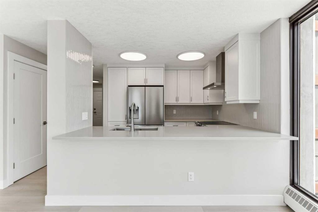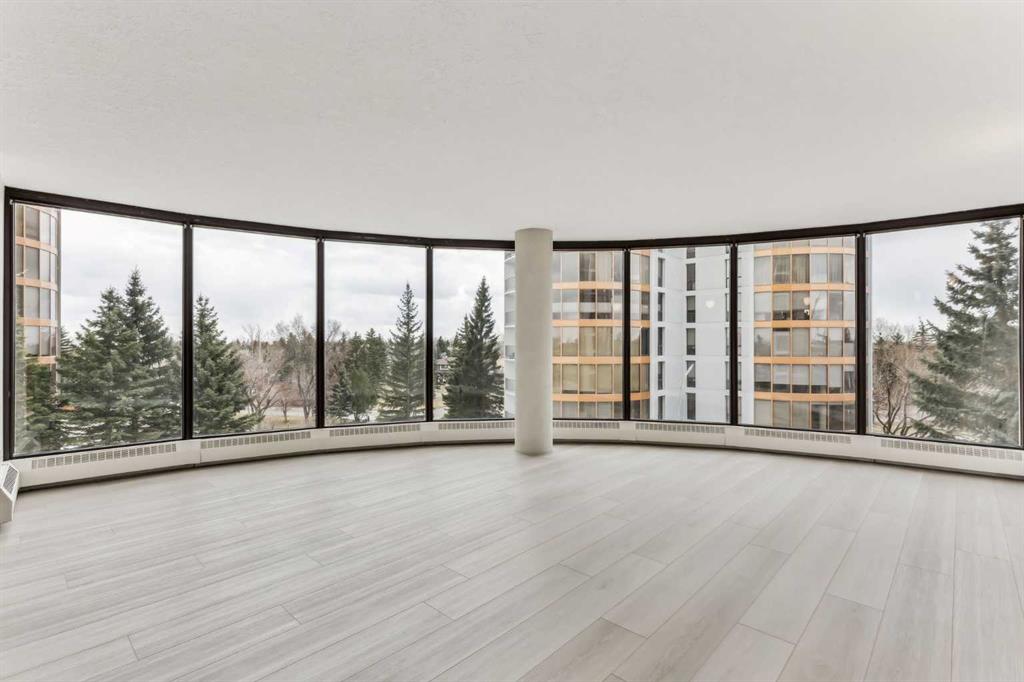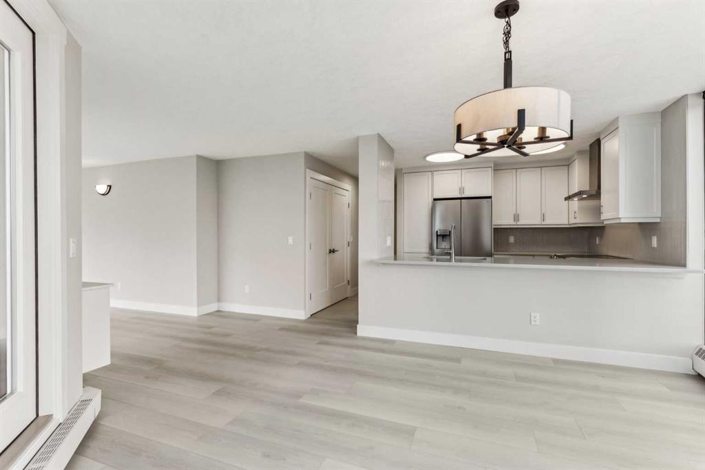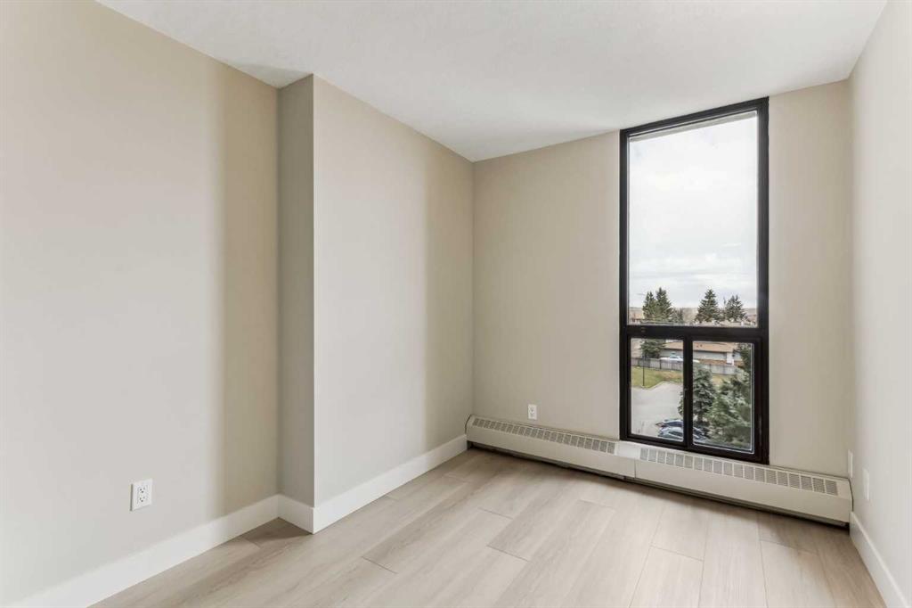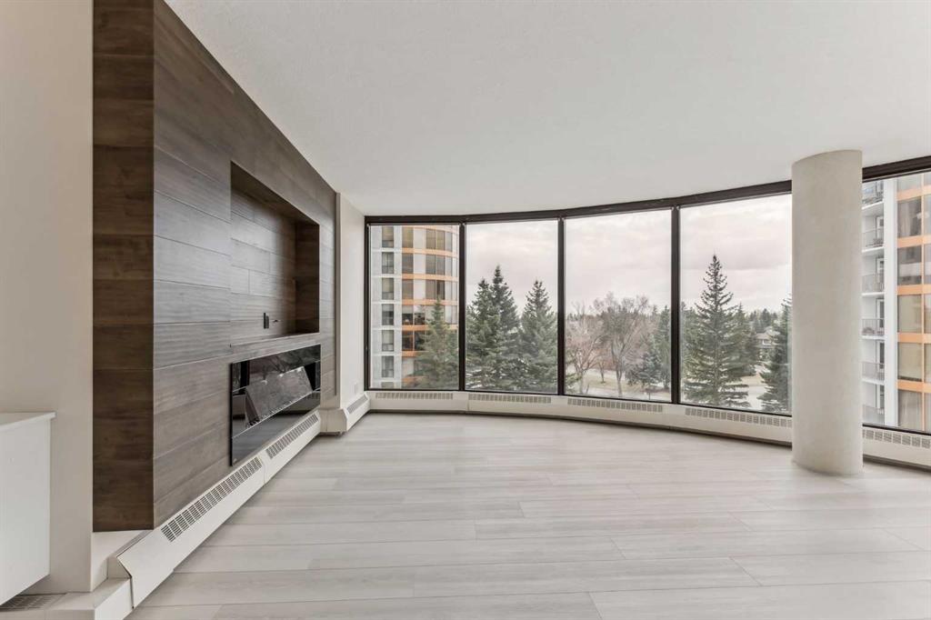 Impressive adult living 18+ COMPLETELY RENOVATED top to bottom 5th floor condo with exceptional workmanship and finishing in the exclusive Odyssey Towers of Coach Hill, with only four units per floor. Enjoy panoramic views from the floor-to-ceiling curved windows in this beautifully appointed 1178sq ft, bright and open floor plan. The condo features a CUSTOM KITCHEN, two bedrooms, an updated bathroom with a walk-in shower, in-suite laundry with a sink, a large in-suite storage room, and a generous-sized balcony. Renovations include a custom kitchen, vanities with quartz throughout, a complete stainless steel appliance package, air conditioning, a stunning feature wall with a built-in electric fireplace, new flooring throughout (luxury vinyl plank, and carpet), a new laundry sink, a wall-to-wall walk-in shower, knockdown textured ceilings throughout, upgraded plumbing and electrical, and much more. There are two parking stalls—one secured underground and a second convenient outdoor stall, as well as ample visitor parking. Amenities include a personalized building manager, a guest suite in each building for overnight guests, a sauna/steam room, a resident's club, beautifully manicured green spaces and gardens, and a very well-managed and maintained complex. Enjoy maintenance-free living in one of Calgary's premier adult living communities! Conveniently located within minutes to the bus stop/direct line to West Side LRT Station, Ambrose University, Rundle College, West Side Rec Center, parks, pathways, restaurants, and less than fifteen minutes to downtown. Quick possession and move-in ready!