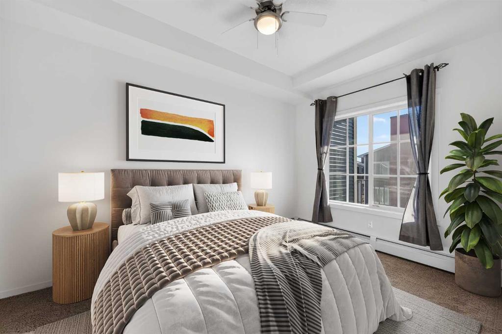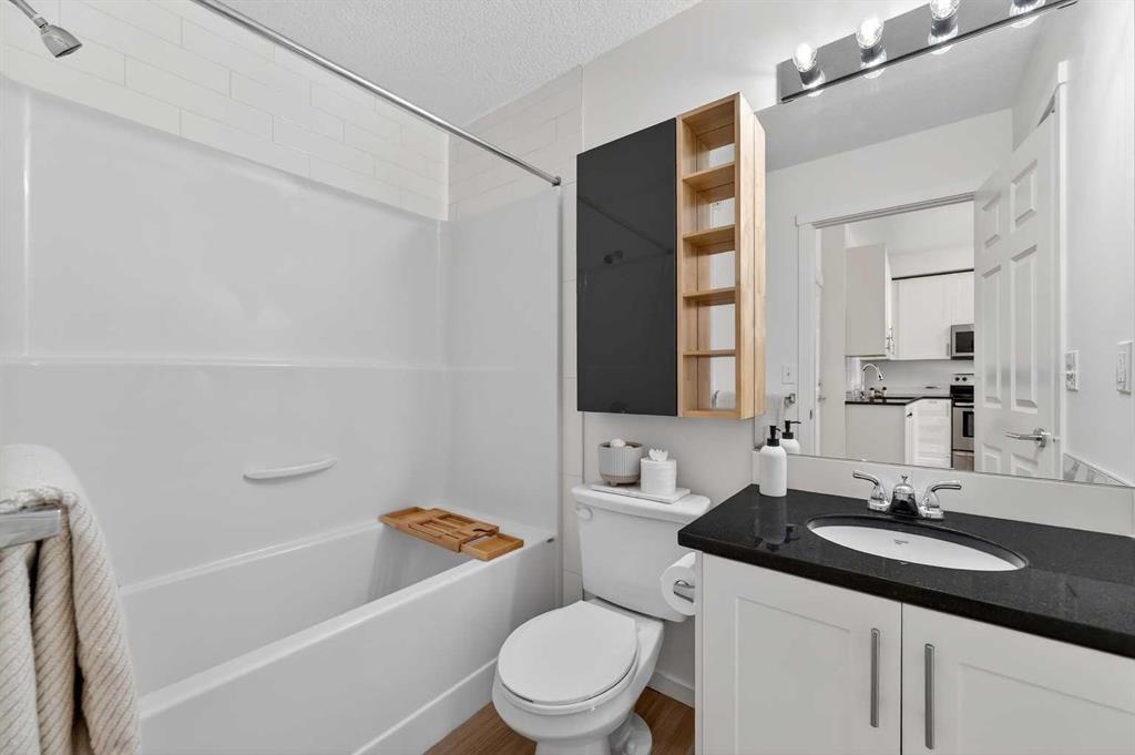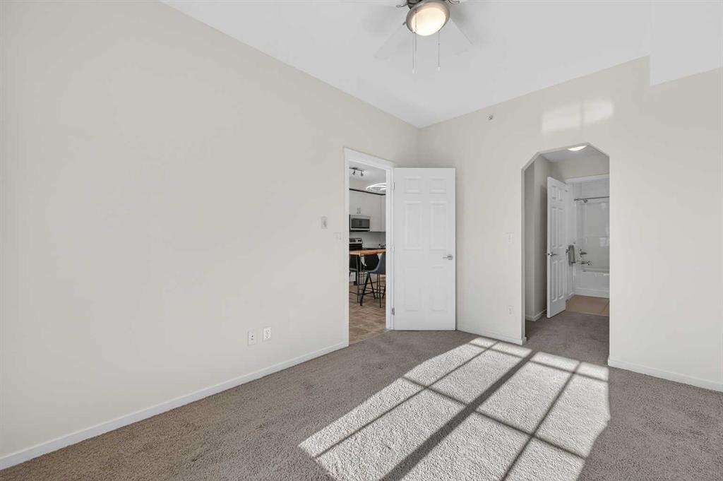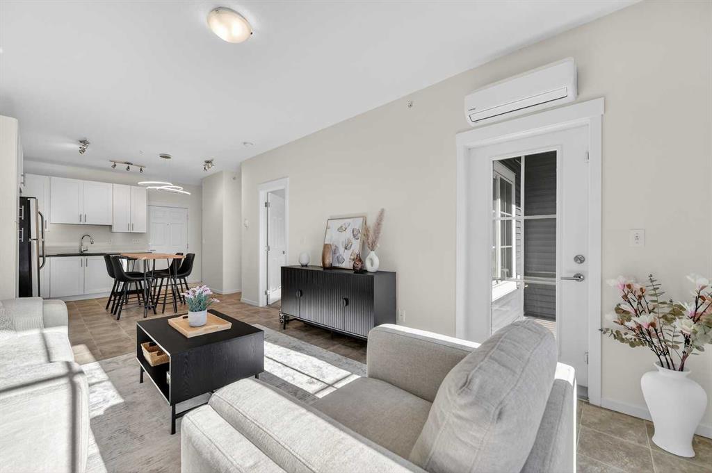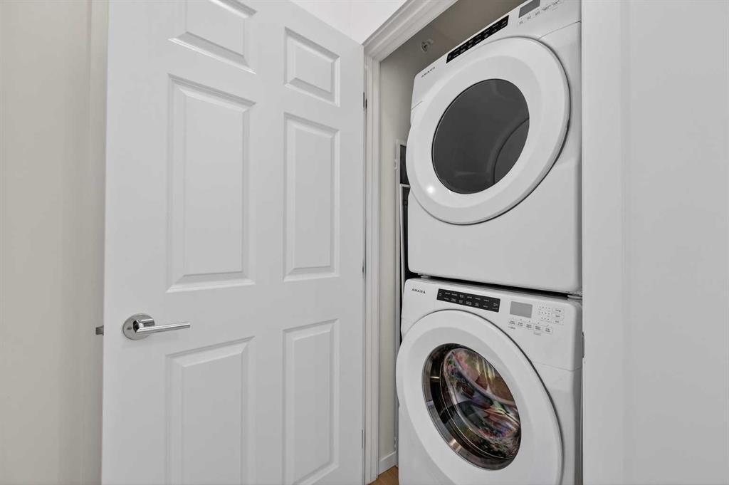 Rare top-floor unit with a sunny south balcony, amazing park & mountain views, AC and 2 titled parking spots! Step into this beautiful unit & enjoy your spacious kitchen with modern lighting, full-height 36” upper white cabinetry, granite countertops, and stainless-steel kitchen appliances which includes a new sleek Microwave Hood-Fan. The living room features an open concept layout with 9’ ceilings throughout & large windows that fill the space with natural light. Step onto your private, sunny south facing balcony with amazing mountain & park views, along with a gas BBQ hookup. The large Primary bedroom includes a spacious walk-through closet leading to a 4-pce bathroom featuring a large soaker tub & shower, a generous cabinet for storage with granite countertop & undermount sink. This unit also includes a new In-Suite full size Washer & Dryer, a spacious walk-in coat & storage closet with an additional dedicated storage space near your parking stall in the underground Parkade. This is a pet-friendly building in a quiet, convenient location. Close to parks, schools, shopping, and with easy access to Stoney Trail and Deerfoot. This home offers both lifestyle and practicality in one beautiful package, so don’t miss your opportunity and book your showing today!
