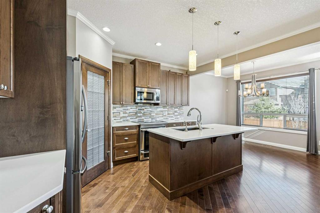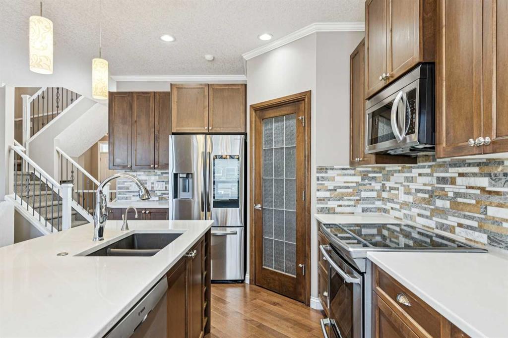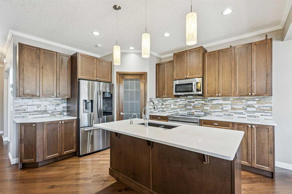 Located on a quiet street in the highly sought-after southwest community of Cougar Ridge, your beautifully appointed two-storey home offers 2,006 sq. ft. of thoughtfully designed living space above grade ++ a FULLY FINISHED basement offering an add'L 860 sq ft. Built by Shane Homes and enhanced with numerous upgrades and beautiful finishes, the home perfectly blends everyday comfort with inviting spaces for entertaining your friends and family. Your main level features a bright, open-concept layout anchored by an impressive chef’s kitchen. An OVERSIZED ISLAND, quartz countertops, abundant cabinetry, stainless steel appliances, and a convenient corner pantry deliver both style and functionality. The adjoining living room is filled with NATURAL LIGHT from expansive windows and highlighted by a striking modern GAS FIREPLACE that creates a warm, welcoming focal point. The dining area flows seamlessly to the east-facing rear deck and fully fenced backyard, complete with a BBQ gas hookup—ideal for morning coffee or summer barbeques with your friends & family. Additional highlights on the main floor include a private den or office behind elegant FRENCH DOORS, a powder room, and a practical mudroom with shelving and direct access to the attached INSULATED double garage. As you make your way upstairs, you’ll find three generously sized bedrooms, two full bathrooms, and a spacious BONUS ROOM flooded with west-facing natural light—the IDEAL space for family movie nights or relaxing at the end of the day. The primary suite offers a walk-in closet and a well-appointed ensuite featuring a stand-alone glass & tile shower and a luxurious corner soaker tub. Your fully developed lower level adds valuable living space with a fourth bedroom, an additional full bathroom, a comfortable family room, and AMPLE STORAGE. Comfort is ensured year-round with CENTRAL AIR CONDITIONING, while recent updates include a new hot water tank (2023) and FRESH PAINT throughout, giving the home a bright, refreshed feel. Outside, the large east-facing DURADEK vinyl deck with privacy glass provides an ideal setting for outdoor entertaining while the yard offers plenty of space for children and pets to play. Ideally located just minutes from the slopes and recreation at Canada Olympic Park (WinSport), the scenic pathways and pond within the community, playgrounds, the expansive trails of Paskapoo Slopes, shopping, and restaurants—this home offers an exceptional blend of convenience, recreation, and NATURAL BEAUTY. Cougar Ridge offers excellent education options with public school catchments including Cougar Ridge, West Springs, and the highly sought after Ernest Manning, along with respected Catholic and private alternatives nearby such as St. Joan of Arc, The Waldorf, and Calgary French and International School. With easy access to Stoney Trail Ring Road, weekend escapes to our majestic Rocky Mountains—whether for hiking or skiing—are just over an hour away. You will LOVE this jewel of a home!