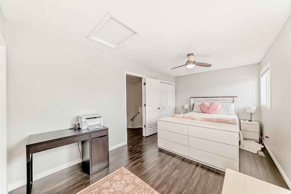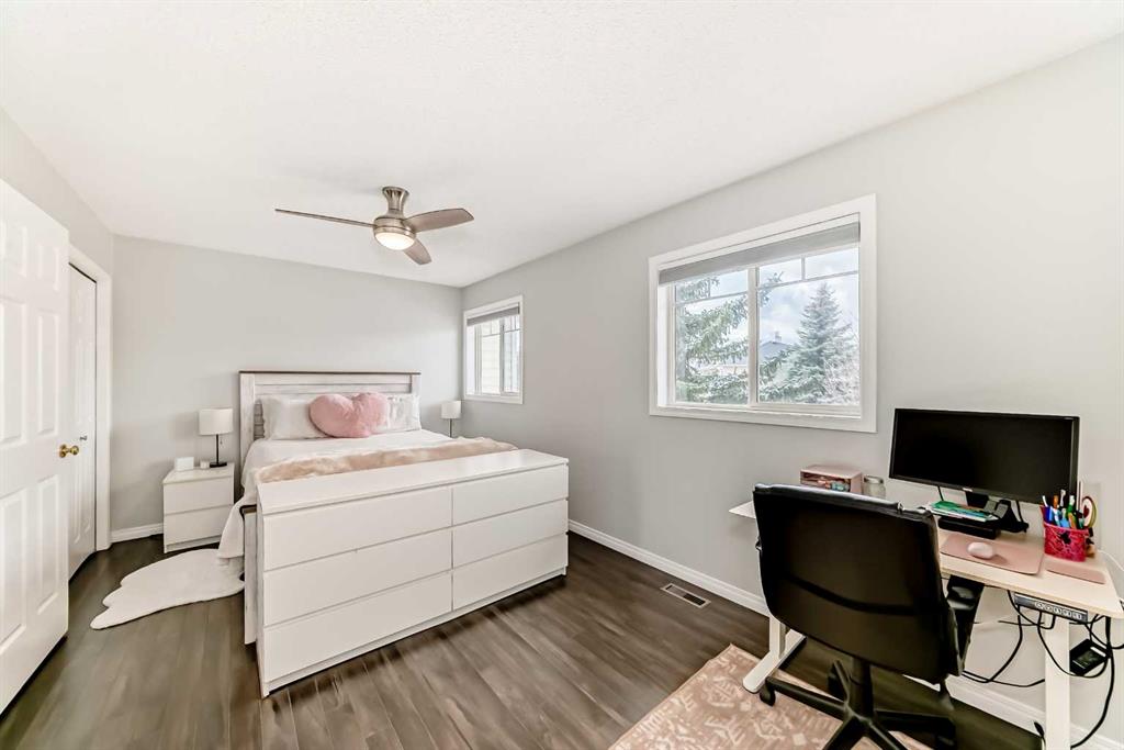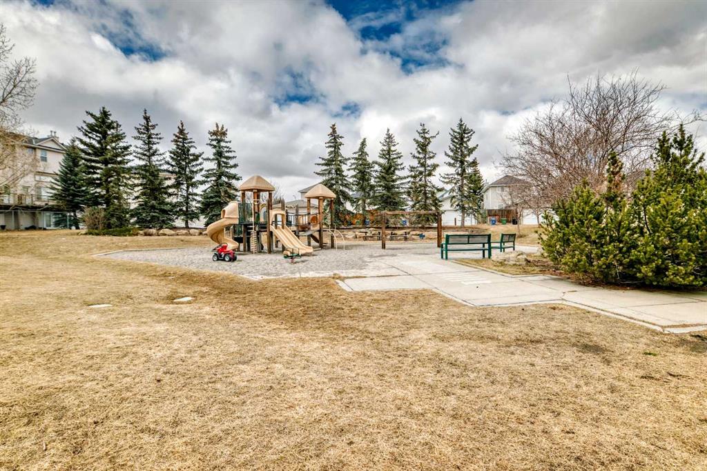 Welcome home, to this bright, spacious and upgraded townhome in one of the most desirable neighbourhoods in Calgary " Country Hills". With 1,582 + square feet of living space, this home is perfect for a growing family, or for young professionals looking for their first home. Upon entering this fine residence you will notice a generous size foyer, with access to your fully drywalled attached garage. Step up the stairs into the living room and you will be impressed by the soaring ceilings, cozy corner gas fireplace, and access to the balcony backing onto green space with views. As you walk up to the next level, you will see a bright and sunny gourmet kitchen with white cabinetry, island., full appliance package and large dining area positioned next to the sunny window. Also on this level you will find the laundry area and private half bathroom. As you head to the upper level, you will find two large primary bedrooms, one with a walk-in closet and the other with his and hers closets, a large full bathroom with pocket door dividing the toilet and bathtub/shower from the sink area. The lower level features a walk-out basement and the room is currently used as a bedroom, and you will also find a a full bathroom featuring a new vanity, toilet and floor tiles, there is also plenty of extra storage space. Walk out to a green space with beautiful trees and more scenic views. Close to schools, parks, soccer fields, shopping and all amenities. Great access to Deerfoot Trail, 14th Street, and close to the Calgary International Airport. This is a well managed, pet friendly complex. Call today to see this lovely home and make it yours! Please note the following updates/upgrades: 2020 : Furnace and hot water tank , 2022: All interior lights, CO and smoke alarms, paint (interior), Blinds and shades, Wyze door bell camera, and Nest thermostat, 2023: LG washer, dryer and fridge, 2024: garage opener and the condo board replaced the wood flooring and railings on the balcony in 2024, and window meshes, shingles and siding (2025). Basement bathroom tiles (floor), toilet, and vanity replaced 2025.