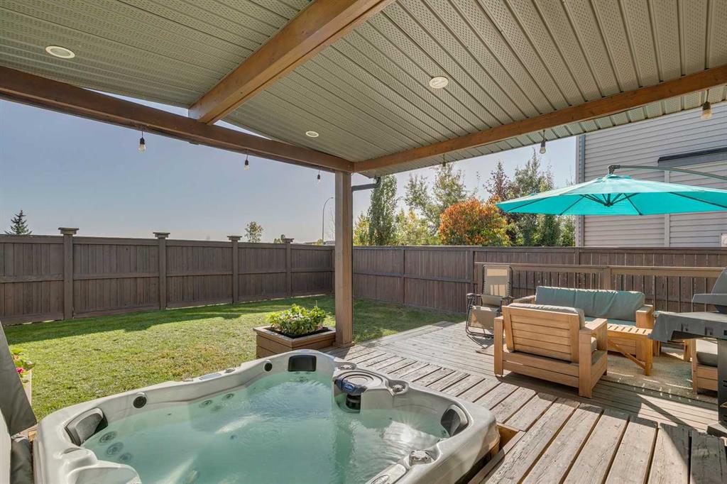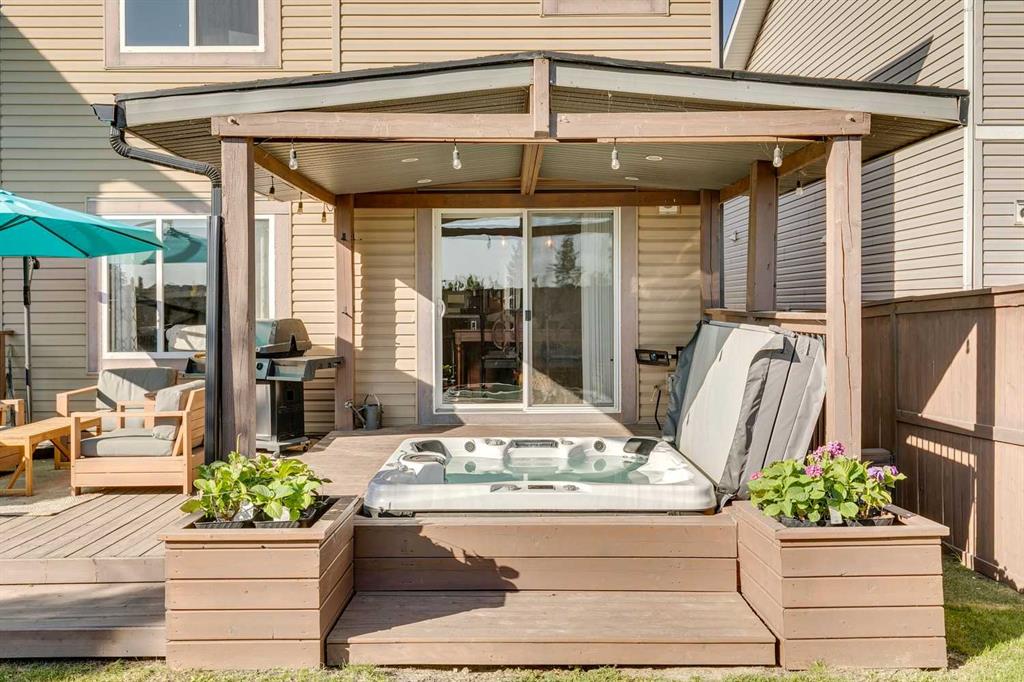 The HEATED GARAGE—complete with its own furnace—ensures comfort and practicality through Calgary winters. Outside, enjoy GEMSTONE lights surrounding the home, a bright south-facing backyard, and a two-tier deck ideal for entertaining. The new 2024 HOT TUB (still under warranty) sits beneath a beautifully lit PERGOLA, creating a perfect evening retreat.