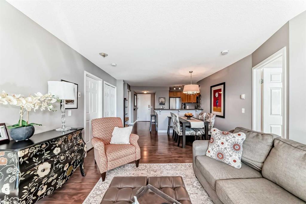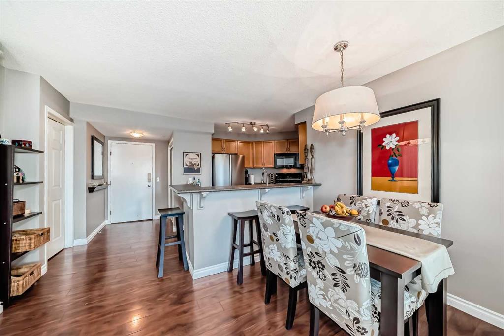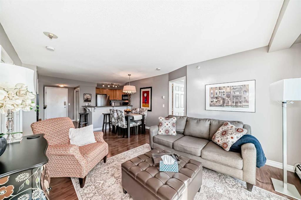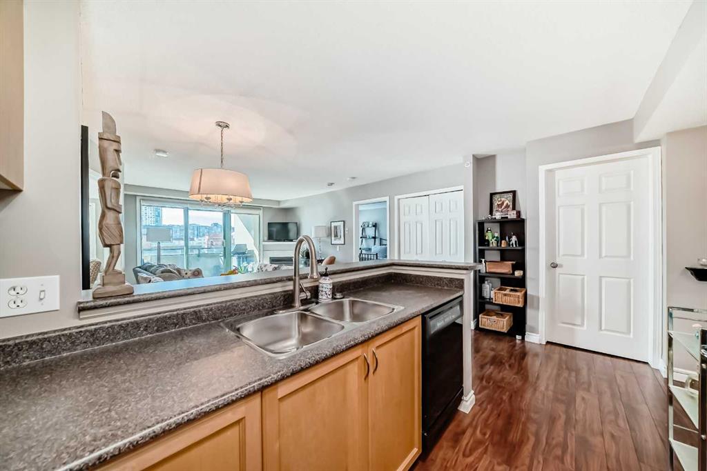 LOCATION, LIFESTYLE, and LUXURY — Welcome to Discovery Pointe!  Nestled in the heart of one of Downtown Calgary's most desirable and walkable inner-city neighborhoods, the West End! This stunning 2-bedroom, 2-bathroom home is your gateway to vibrant urban living! Located on the third floor, this unit boasts a bright, modern aesthetic with high-end finishes throughout. The gourmet kitchen features sleek countertops, premium stainless steel & black appliances, and plenty of cupboard and counter space — perfect for the passionate home chef. A large breakfast bar opens to the dedicated dining area and a cozy living room complete with a gas fireplace — the perfect space to cuddle up to your favourite book or unwind with the latest Netflix binge. Step outside onto your oversized covered balcony — perfect for BBQs, hosting friends and family alike, or simply enjoying a quiet morning coffee in the fresh air. The primary bedroom is filled with natural light and connects to a generous walk-through closet leading to your 3-piece bathroom, complete with a glass-enclosed standup shower — a cozy retreat at the end of your day! The spacious second bedroom could easily serve as a den or office for quiet work and includes a 4-piece ensuite bath as well. Additional conveniences include concierge services, in-suite laundry, a TITLED underground parking stall, underground visitor parking, a massive party room for hosting special events, a games room with ping-pong and billiards, and an extremely well equipped fitness centre on the 3rd floor steps from your new home. This prime location offers unbeatable access to all the trendy shops, cafes, and restaurants of Downtown Calgary to satisfy whatever you're craving. Live steps from the Bow River pathways, parks, and C-Train station - with free transportation within the downtown core - this location offers the best of urban convenience and natural beauty. Don’t miss your chance to own in one of Calgary’s most coveted neighborhoods — call today to book your private showing!