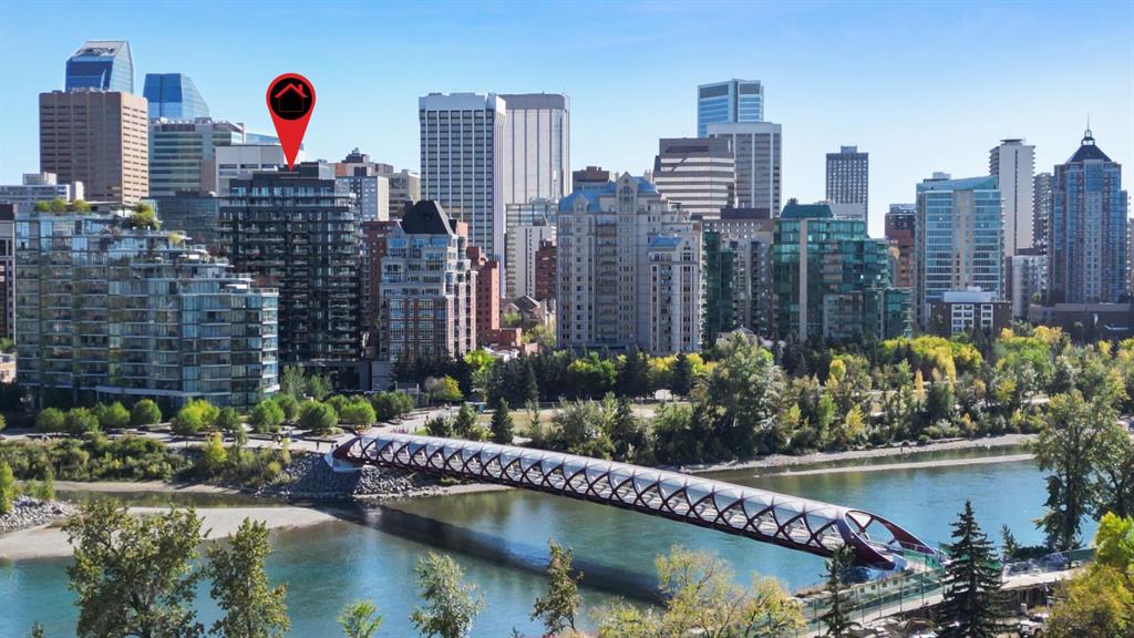 Welcome to First & Park, an elegant new address in Calgary’s sought-after Eau Claire community. This one bedroom, one bathroom home combines modern design with everyday convenience. The open-concept layout features a sleek kitchen with contemporary cabinetry, quartz countertops, and premium appliances, flowing seamlessly into the bright living space and east facing balcony. A spacious bedroom, full bath, and in-suite laundry offer comfort and functionality. Enjoy a titled parking stall, along with building amenities including an upscale gym & yoga studio (patio just outside which also features gas bbq hookups), party lounge, modern co-working space and concierge. Just steps from the Bow River pathways, Prince’s Island Park, dining, and downtown, this is the perfect balance of style and location. Whether you’re a first-time buyer, investor, or looking for a stylish downtown retreat, this home at First & Park is the perfect opportunity to live where the city meets the river. Packages available for FURNISHED UNITS! 1 titled parking stall with unit!