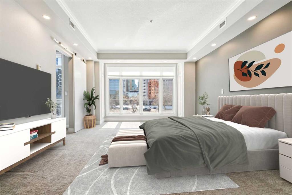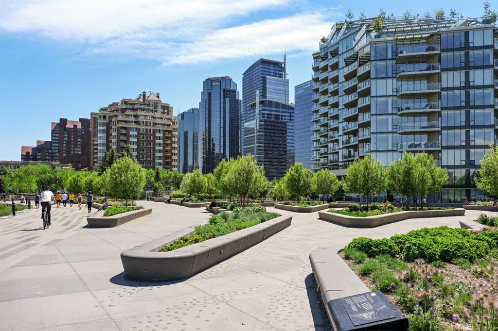 Time to indulge in the pinnacle of luxury, elegance and comfort at this exclusive premier gated condominium home in the Princeton Cityscape, a private and quiet 20 suite low-density luxury building. This stunning residence offers an unparalleled blend of sophistication and functionality featuring 2 bedrooms plus den, 2 bathrooms, 2 titled parking stalls and secure titled storage locker. The thoughtfully designed open-concept layout with high ceilings seamlessly connects the living, dining and kitchen areas, creating a perfect environment for entertaining or enjoying quality time relaxing at home. Completely renovated with high-quality finishing and meticulous attention to detail! Enjoy the many features and upgrades with wide plank hardwood flooring, quartz countertops and eat-in Island, stainless steel appliances, gas stove, built-in coffee maker and wine fridge, soft close drawers throughout, central air conditioning, electronic Hunter Douglas blinds, 2 sided gas fireplace, ensuite bathroom with steam shower, walk-in closet, high-end stack washer/dryer, den/office area, spacious south facing terrace patio, balcony, large bright floor-to-ceiling windows, built-in vacuum system, under stairs storage room, huge primary bedroom, convenient front/back entrances, generous amount of recessed lighting and views of the night time City lights! This dream come true condominium home has it all! Extraordinary heart of Eau Claire location along the south bank of the Bow River next to beautiful Prince's Island Park and the world-class pathway system. Enjoy everything this amazing downtown community has to offer that includes the Eau Claire Athletic Club, fine dining, great restaurants, outstanding cafes and bakeries, amazing pubs, close to the plus 15 skywalk system, LRT & Transportation, Peace Bridge and just a short walk to Kensington shopping and Calgary's vibrant city center. Time to enjoy the ultimate in downtown urban living!