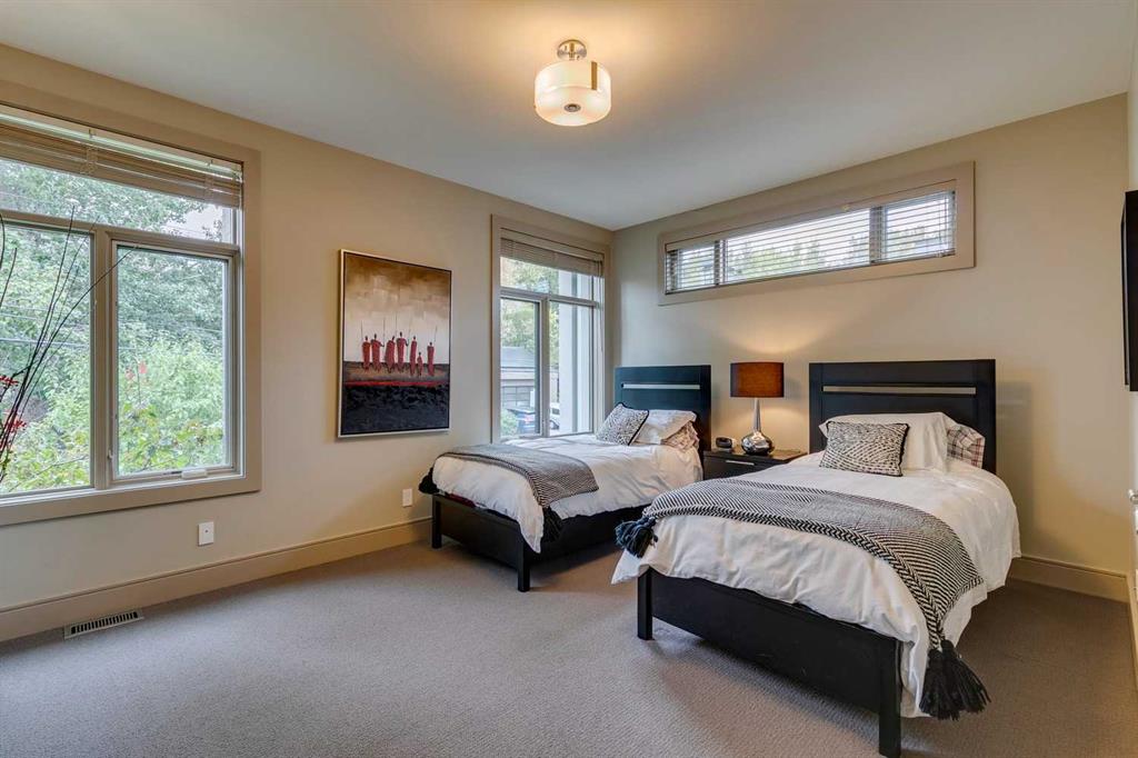 Welcome to this exquisitely crafted home, perfectly positioned on an oversized lot in the heart of Elbow Park, one of Calgary’s most established and desirable communities. Built by Empire Custom Homes, this residence offers over 3454.81 square feet of timeless design, thoughtful functionality + understated elegance. From the moment you step inside, the home reveals its careful attention to detail. A gracious front entry sets the tone, while a beautiful dining room just off to the left offers a refined space for gatherings. Beyond, the open-concept layout unfolds with a lovely formal living room anchored by a gas fireplace, creating a warm and inviting retreat for Calgary’s winters. At the heart of the home lies a chef’s kitchen designed for both beauty + performance, featuring Wolf, Sub-Zero + Asko appliances, abundant cabinetry, a generous island + a breakfast bar. This central gathering space flows effortlessly into the adjoining family room, ideal for relaxed evenings or casual entertaining. The tucked away wine-bar + a well-planned mudroom with access to the private yard and oversized double garage complete the main floor, blending everyday convenience with elegant design. A striking open staircase invites you upstairs, with the large floor-to-ceiling windows flooding the home with natural light. The upper level boasts a tranquil primary suite with an expansive walk-in closet + spa-inspired ensuite. Three additional bedrooms, each with their own ensuite, provide rare comfort + privacy for family or guests. A wide central hall enhances the sense of openness + leads to a private balcony to complete the upper level. The theme of refined living is continued on the lower level with a a spacious media room + highly functional wet bar, flexible space for a gym or playroom, a fifth bedroom + a full bathroom. Outdoors, mature landscaping frames a private patio complete with a fireplace, a perfectly designed space for year-round entertaining + quiet evenings alike. The additional green space offers room for family gatherings, children at play + moments of serenity. The combination of scale, craftsmanship + location make this Elbow Park residence a truly rare opportunity. From its proximity to top-rated schools, community parks + the Glencoe Club, to nearby river pathways, vibrant shopping + dining districts, this is a home that captures the very best of inner-city living.