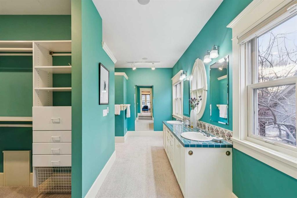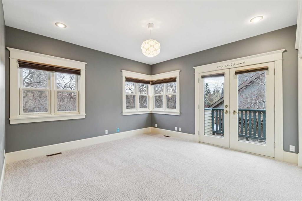 Perfectly positioned in the heart of Elbow Park just steps from the Glencoe Club, this distinguished Queen Anne–style residence offers a rare opportunity to plant roots in one of Calgary’s most cherished family neighbourhoods. Set on an exceptional oversized lot with coveted 75’ frontage and a sun-drenched west-facing backyard, this is a home where children can walk to social activities, swimming, skating, or tennis lessons at the Club. This is a home for generations to gather for the holidays, celebrations, and everyday living. Rich in warmth and architectural authenticity, the home was masterfully built in 1993 to reflect and respect the historic charm of Elbow Park, showcasing timeless design through its classic center hall plan, gabled rooflines, wrap-around veranda, and signature hexagonal tower feature. Inside you’ll find extensive wainscotting, crown moulding, decorative tile-work, and elegant 9’ ceilings. The main floor unfolds beautifully for both entertaining and daily life, with a living room anchored by a wood-burning fireplace and charming bay window, and a gracious dining room across the entry. The kitchen presents remarkable opportunity with its stunning wall of south-facing arched windows, premium Wolf double oven range, Sub-Zero refrigerator, and generous cabinetry, all offering exceptional space and flow for future personalization. A sun-filled breakfast nook wrapped in windows within the tower opens to a cozy family room with built-in bookcases and brick fireplace, creating a natural gathering space. A generous, quiet office with clerestory window, a powder room, and practical mudroom complete the level. Upstairs, a flexible lounge or homework area supports busy family life, while the expansive primary retreat offers a private sanctuary with a fireplace, dual walk-in closets, and a breathtaking turret sitting area with south and west views beneath a vaulted hexagonal ceiling. Three additional spacious bedrooms, full bath, and upper laundry room enhance functionality for growing families. The fully developed lower level adds approximately 1,535 square feet of versatile living space including a recreation area, media room and built in cabinets and bookcases. A fifth bedroom is an ideal room for guests, teens, or live-in support, and the bathroom has a secondary laundry. With refinished hardwood floors, new carpeting, and Poly-B plumbing already removed, this home offers the rare advantage of being move-in ready while allowing thoughtful updates over time, a far easier and faster process than building new in this premier location. Surrounded by mature trees and exceptional outdoor living spaces including a large south patio with fire-pit, lawn, side driveway, and a heated triple detached garage, this is a legacy property where lifestyle, community, and opportunity come together beautifully.