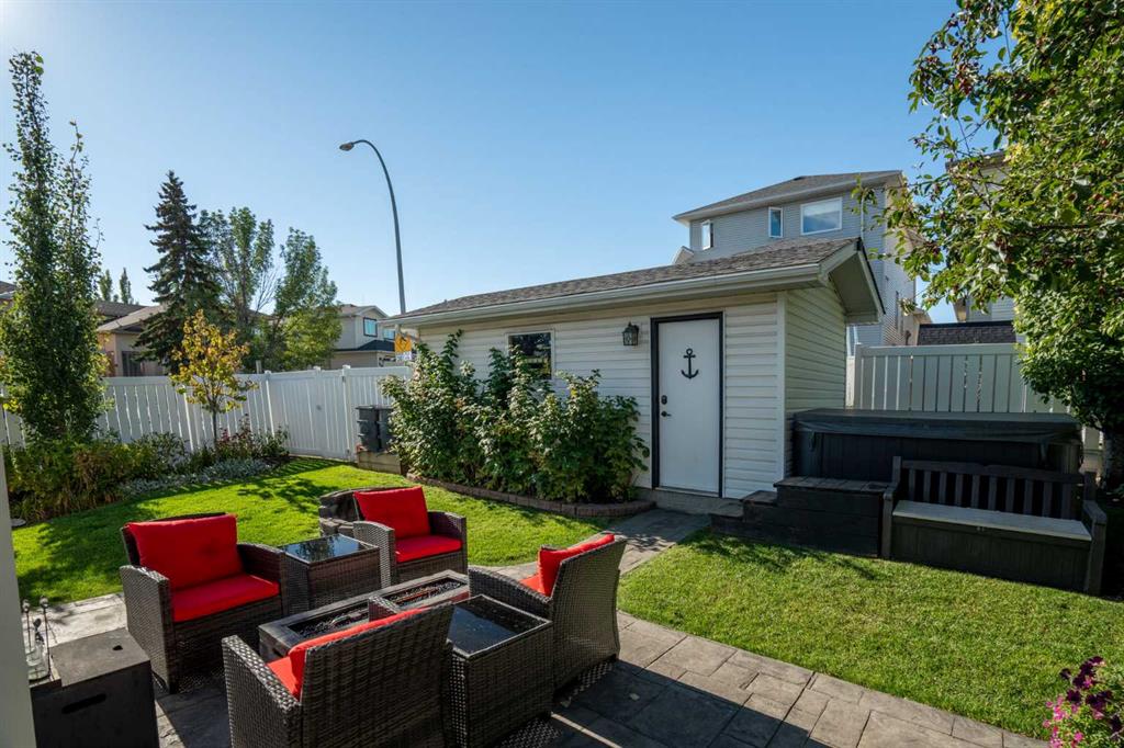 Pride of ownership is apparent in this beautifully cared-for Stepper-built home, offered by its original owner and tucked away on a quiet street in the most mature and accessible part of Hidden Valley. This charming property combines comfort, function, and thoughtful upgrades with a warm, inviting feel. Step inside to discover vaulted ceilings that fill the main floor with light and a sense of space. A well sized foyer invites you inside into the living room which also could accompany a formal dining area, if need be. The kitchen is a great place for family and friends to gather, with nice cabinetry complimented by a stainless steel appliance package and island looking into the informal dining area. Located away from the primary area you’ll find two bedrooms and two full bathrooms, including a generous primary suite with a double-sink ensuite, deep soaker tub, and separate shower. On site finished hardwood flows throughout most of the main floor. - no carpeting in this home ( Hardwood, LPV and tile throughout) The fully developed lower level expands your living space with a large family room, games area, office, third bedroom, and full bathroom—perfect for family gatherings, guests, or quiet relaxation. Outdoor living is just as inviting. The gorgeous, private treed yard offers a serene retreat with a maintenance-free patio and vinyl fencing, adding privacy There’s plenty of parking and storage with a double attached garage plus a single detached garage (with power and door opener)—ideal for hobbyists or extra vehicles. Additional notable features include air conditioning, triple-pane Polar Rayomax windows, a wood-burning fireplace with gas lighter, built-in vacuum system, and newer furnace (2021). The hot tub is also included for year-round enjoyment. Located on a corner lot with no sidewalks to shovel, this home is easily accessible from 14th Street and Country Hills Boulevard, close to community schools, parks, and pathways.