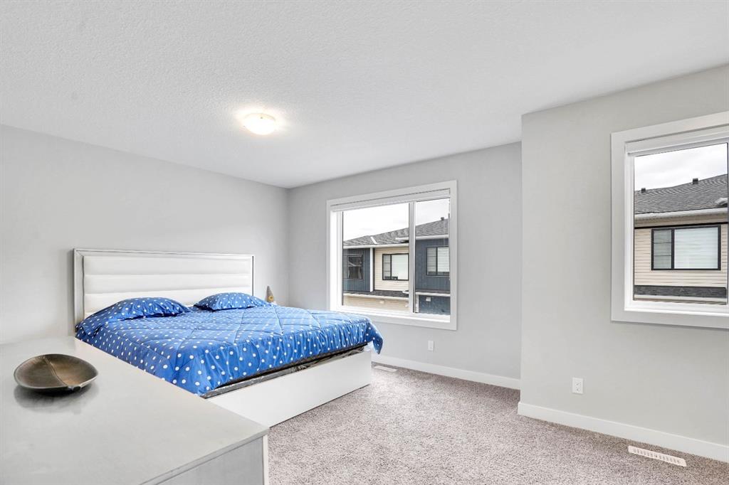 Welcome to this one-of-a-kind duplex located in the vibrant community of Hotchkiss in SE Calgary, offering an exceptional blend of luxury living, thoughtful design, and income potential. This beautifully upgraded home features a total of 5 bedrooms and 5 full bathrooms with a home office including a fully legal 2-bedroom basement suite—perfect for extended family or generating rental income. The main level showcases a bright open-concept layout with soaring high ceilings, creating an inviting and spacious atmosphere throughout. The large upgraded kitchen is truly a chef’s dream, complete with stainless steel appliances, a gas stove, chimney hood, built-in microwave, full-height cabinetry, and ample storage, while sleek quartz countertops add a modern touch to both the kitchen and bathrooms. Upstairs, you’ll find quality carpeting, a well-lit staircase with a generously sized window bringing in natural light, and a stunning primary bedroom featuring a large walk-in closet and a luxurious 4-piece ensuite with double vanities—it truly feels like a space found in a much larger home. With over $100,000 in high-end upgrades, along with features like a gas line for BBQ and a functional laundry area with sink, every detail has been carefully designed for comfort and convenience. Situated in Hotchkiss, one of southeast Calgary’s newest master-planned communities, this home is surrounded by wide-open prairie and mountain views, with quick access to Stoney Trail and Highway 22X for effortless commuting and just minutes from Mahogany and Seton for shopping, dining, and access to the South Health Campus. The community is centered around a stunning 30-acre natural wetland with boardwalks and pathways, part of an expansive green space network planned to include over 50 acres of parks and trails—perfect for outdoor enthusiasts. With future amenities including a K-9 school, neighbourhood retail, and family-friendly parks, Hotchkiss offers the perfect balance of nature, connectivity, and modern community living—making this property a rare opportunity to own a truly exceptional home. Builder Floorplan provided. Measurements are not in accordance with RMS . RMS Measurements will be uploaded once available.