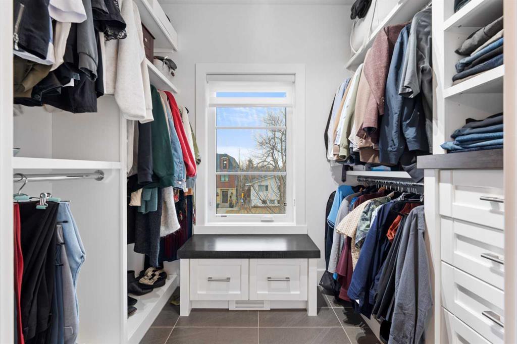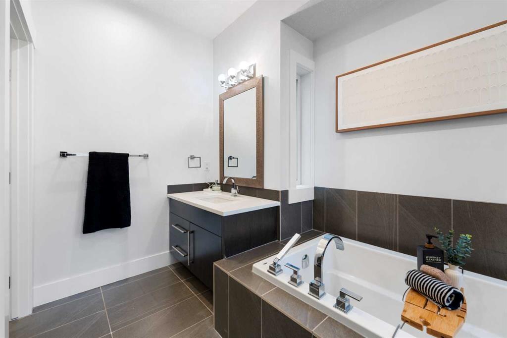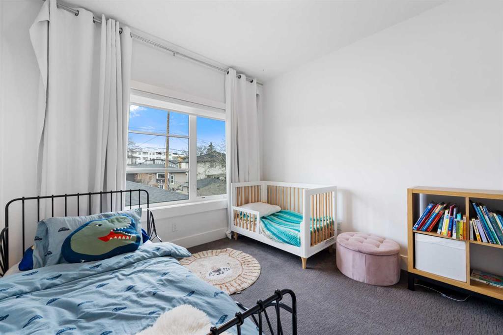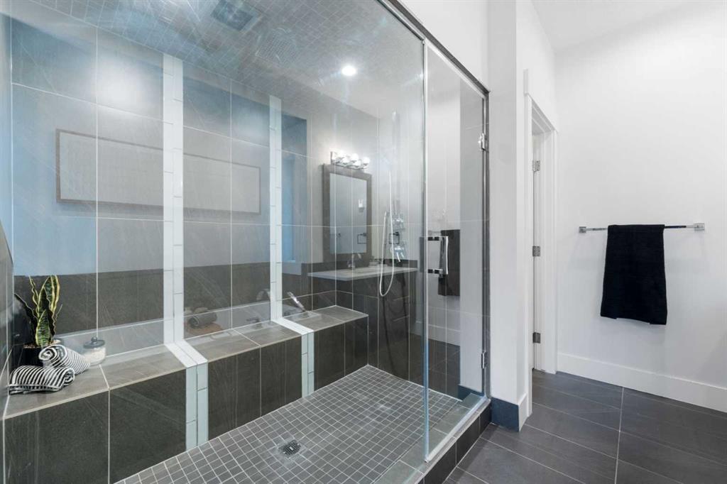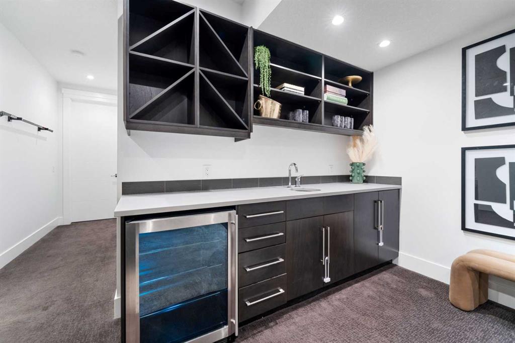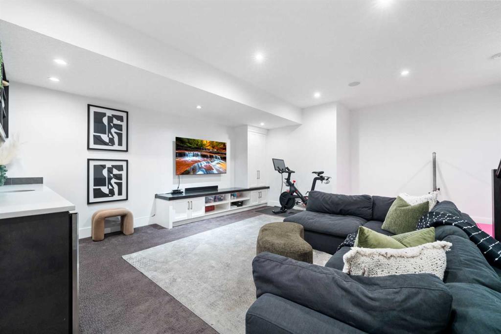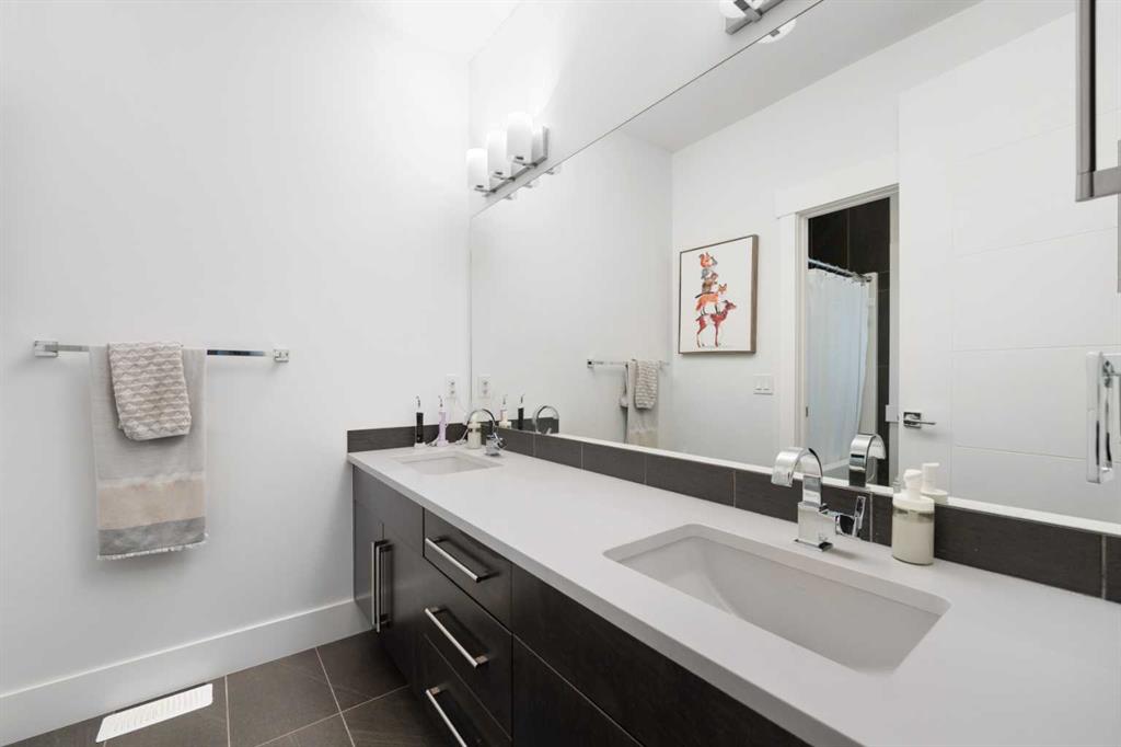 Urban living at its finest. This custom-built contemporary home in the heart of Killarney offers over 2600 sq ft of impeccably designed, fully developed living space, thoughtfully upgraded from top to bottom. Featuring a sunny west-facing backyard, in-floor heating, and central air conditioning, this home blends luxury with everyday comfort. The open-concept main level is flooded with natural light, highlighted by expansive windows, soaring 9’ flat painted ceilings on every floor, and an abundance of pot lights. The gourmet kitchen is a chef’s dream, showcasing quartz countertops throughout, a massive island, loads of drawer storage, sleek custom cabinetry, stainless steel appliances, and a gas range—perfect for both entertaining and daily living. On one side the spacious dining area and the other a cozy yet sophisticated living room, anchored by a striking gas fireplace with custom built-ins. A separate mudroom and stylish powder room complete the main floor. Upstairs, the primary retreat is a true sanctuary, spacious enough for a king-sized bed and featuring a boutique-hotel-inspired ensuite with double vanities, a soaker tub, an oversized glass steam shower, in-floor heating and a custom walk-in closet with built-in organizers. Two additional generously sized bedrooms—one with a custom built-in desk—are complemented by a beautifully appointed full bathroom and convenient upper-floor laundry. The fully finished lower level expands your living space with an additional bedroom and full bathroom, plus a large family room complete with a wet bar, beverage fridge, custom entertainment unit, and room for a home gym, movie nights, or hosting guests. In-floor heating ensures year-round comfort. Superior finishes throughout include stunning wide-plank hardwood flooring, while thoughtful upgrades such as a home audio system with built-in speakers and irrigation add everyday ease. The double detached garage features 10’ ceilings for extra storage potential and an 8’ high door for easy access. Designed for effortless indoor-outdoor living, the home opens to a private, low-maintenance fenced backyard—ideal for BBQs, lounging, or dining al fresco on the concrete patio through expansive glass patio doors. Perfectly situated in desirable Killarney, just steps from Holy Name School, one block from a green space and park, and minutes to trendy cafés, boutique shopping, downtown, and the C-Train. This is the ultimate executive home for those seeking luxury, style, and a truly effortless urban lifestyle.