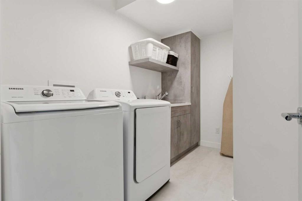 Upstairs offers two generous children’s bedrooms, a 5-piece bath with double sinks and separate water closet, a convenient full laundry room with sink and storage, and a luxurious primary suite with walk-in closet, private rooftop patio, and a spa-inspired ensuite featuring heated floors, curb-less walk-in shower, soaker tub, double sinks, and private water closet.