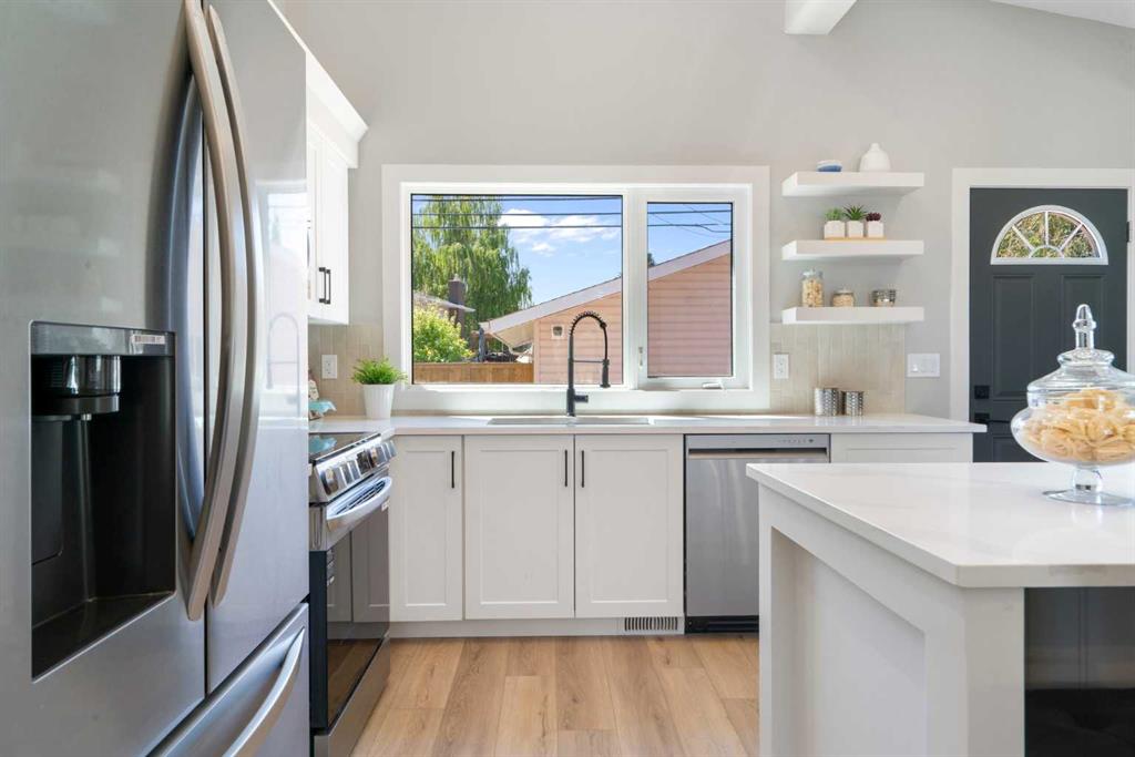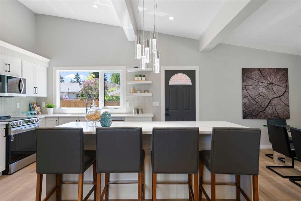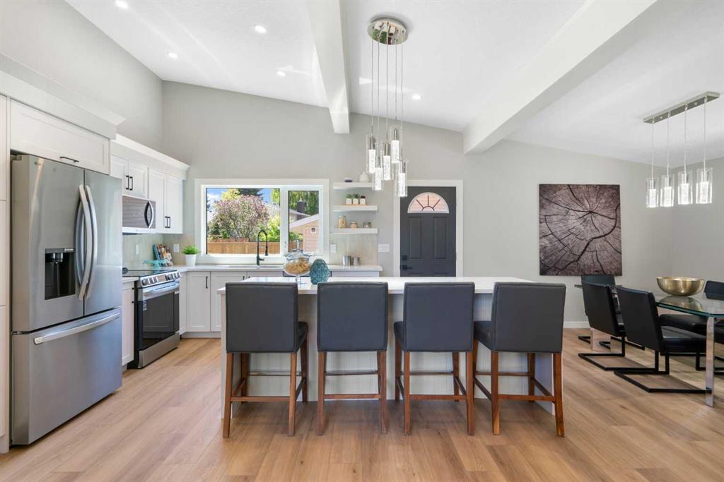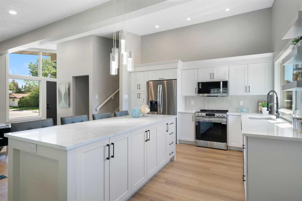 Step inside this beautifully upgraded four-level split, a true gem nestled in prestigious Lake Bonavista. Every inch of this stunning home has been meticulously updated, captivating you with luxurious vinyl plank flooring, a fresh interior, abundant light, and a soaring vaulted ceiling. The open-concept main floor masterfully blends style and functionality. The living room features a modern fireplace and charming garden views. The sleek kitchen is a chef’s delight, boasting a center island with ample seating, extensive quartz countertops, and brand-new stainless-steel appliances. The adjacent dining room offers a versatile space for any gathering. Ascend to the upper level's gorgeous primary suite, a private sanctuary with a walk-through closet leading to your spa-like ensuite. This oasis includes an elegant standalone soaking tub, dual sinks, and a spacious walk-in shower. A second bedroom with its own four-piece ensuite is also conveniently located here. The lower level, graced with new carpeting, expands functionality with a good-sized office and two additional bedrooms. A conveniently located three-piece bathroom serves this level. Descending further, the basement transforms into a haven for entertainment with a large recreation room and handy dry bar. Step outside into the generous sunny, fenced backyard with a paved patio for BBQs, sprawling green space, and garden potential. Direct access to your rear, detached double garage ensures convenience, while the front driveway provides additional parking. Lake Bonavista itself is more than just a community; it's a lifestyle. Just minutes away, the shimmering lake offers abundant year-round activities, from swimming and beaches to tennis, an outdoor gym, and more. This highly desirable community boasts a prime location with easy access to major thoroughfares, South Centre Mall, diverse restaurants, and Fish Creek Park. A home of this caliber, in such a coveted location, is exceptionally rare and will undoubtedly be claimed swiftly. Book your showing today!