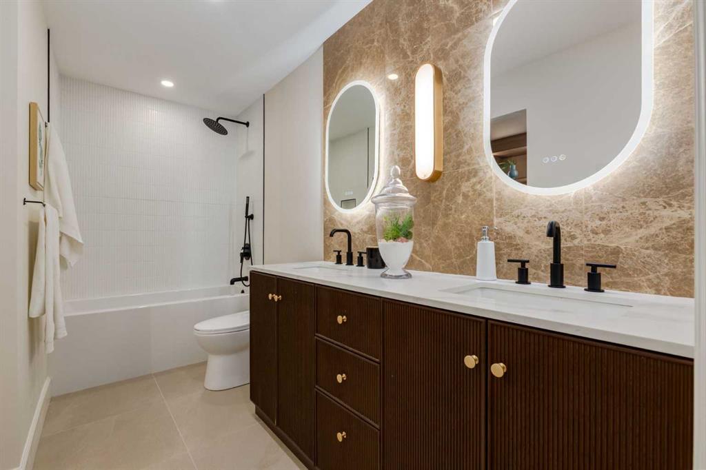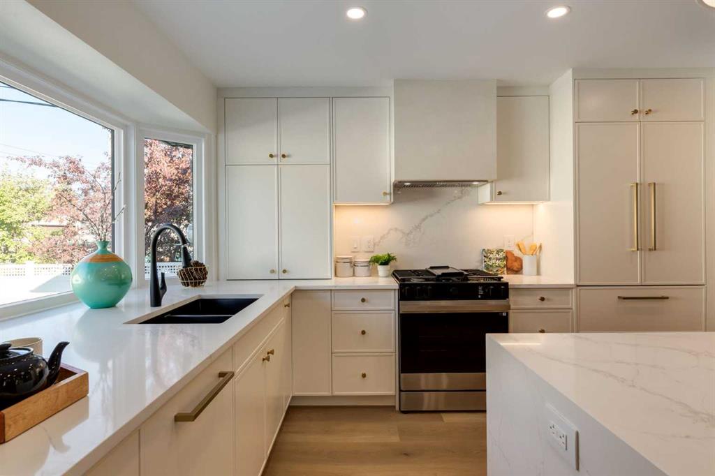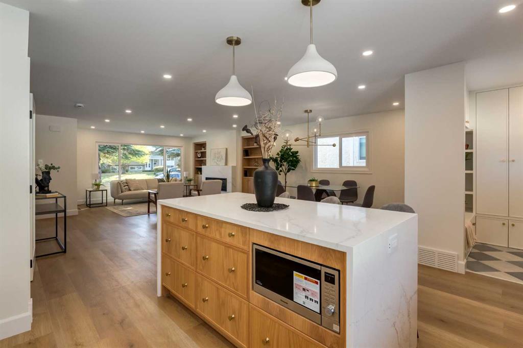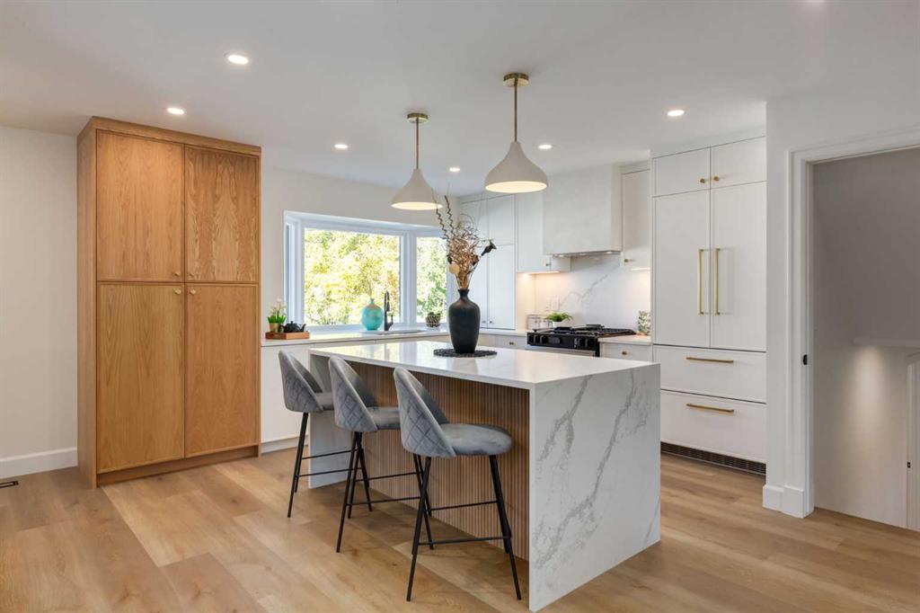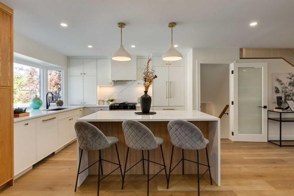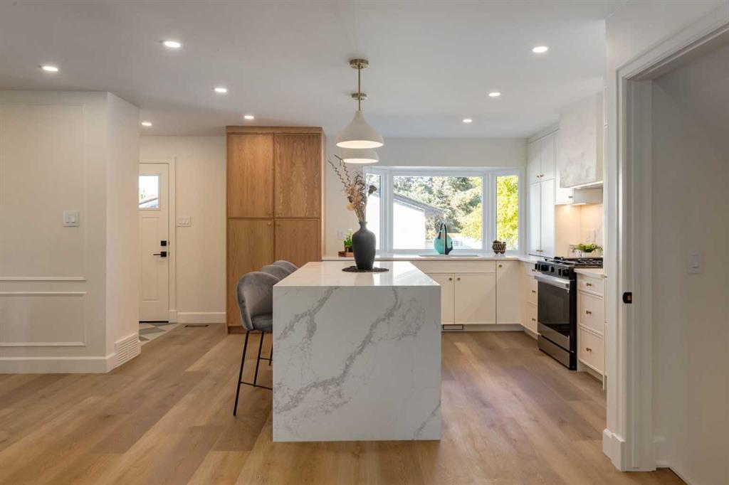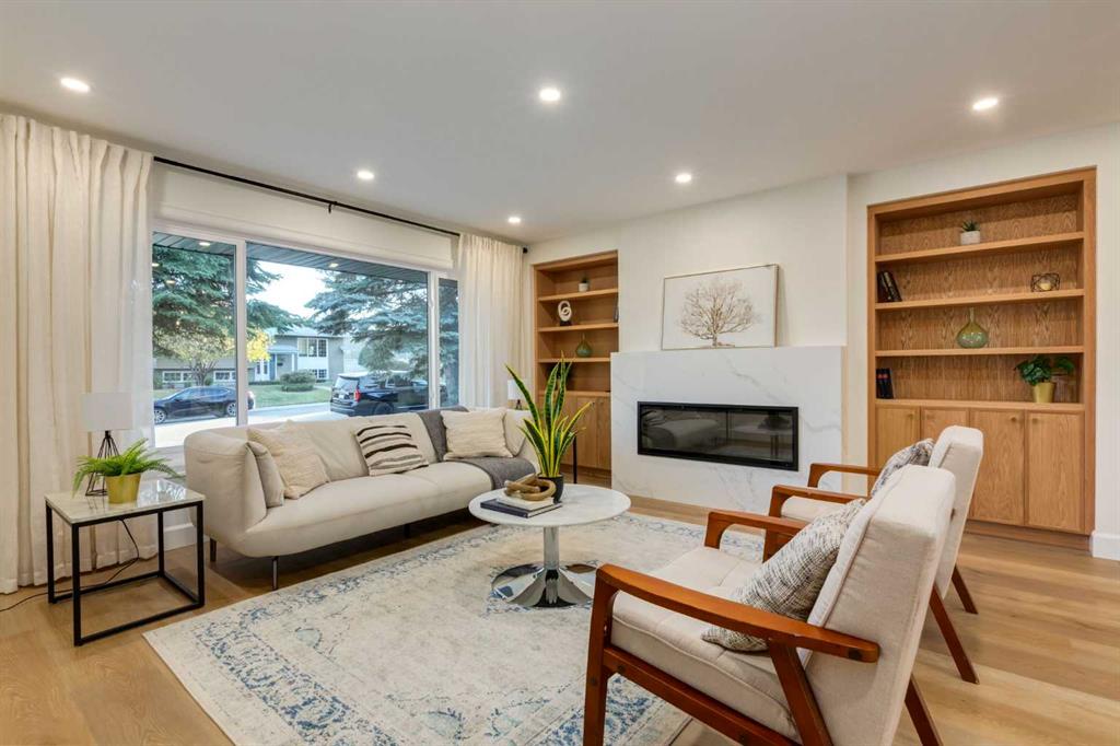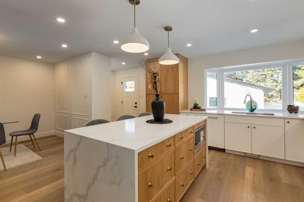 Not a detail overlooked in this stunning and fully renovated 4-level split home in the sought-after lake community of Lake Bonavista. Offering 2,741 SF of thoughtfully designed living space with 5 bedrooms, 3 bathrooms and an oversized double detached garage (24'x24') with epoxy flooring. Immediately you will love the striking curb appeal with crisp white brick and siding accented by black windows, soffits and fascia. Inside, an abundance of natural light highlights the contemporary design and upscale craftsmanship. At the center of this home is the gourmet kitchen, designed for both function and style. It boasts a large island with a breakfast bar and waterfall quartz counter, extensive cabinetry and counter space (with 2 hidden push-pop compartments), undercabinet lighting, and a high-end appliance package, including a gas stove. The spacious main floor also offers an open-concept dining area, living room with custom built-ins and cozy gas fireplace and rear entry mud room with built-in storage. Upstairs you will find the primary suite with a show stopper walk-in closet with laundry and infloor heat and a spa-like 5 piece ensuite. A second bedroom and a beautifully designed 4-piece bathroom complete this level. The fully developed basement is the perfect space for entertaining or hosting guests. It includes a family room, recreation room, 3 additional bedrooms, a gorgeous 3 piece bathroom and a second laundry room making it an ideal retreat for family or overnight visitors. The beautifully landscaped backyard is fully fenced and gives ample space for summer enjoyment on the expansive concrete patio (27'x22') and direct access to the garage. Don't overlook the central AC for those hot summer days and other notable updates including all new windows, insulation in attic, electrical and mainline backwater valve. Lake Bonavista is a truly unique and sought-after community offering private lake access for year around enjoyment as well as schools, shopping, and parks all within close reach. This home is truly a MUST SEE!