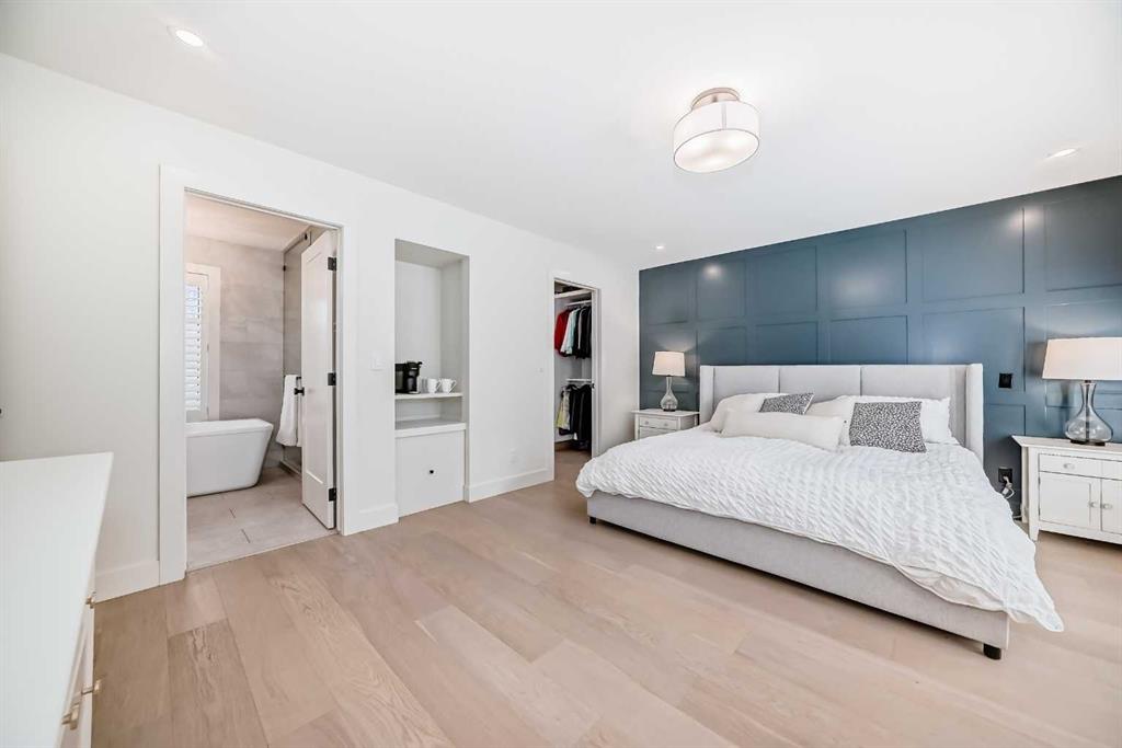 The spacious primary retreat offers a true escape, featuring a luxurious 5-piece ensuite with a steam shower, a generous walk-in closet, abundant storage, and direct access to the back deck. A second bedroom, 4-piece bathroom, convenient laundry room, and functional mudroom complete the main floor. Engineered hardwood flooring runs throughout the main level, adding warmth and continuity, with heated tiled floors in ensuite and basement.