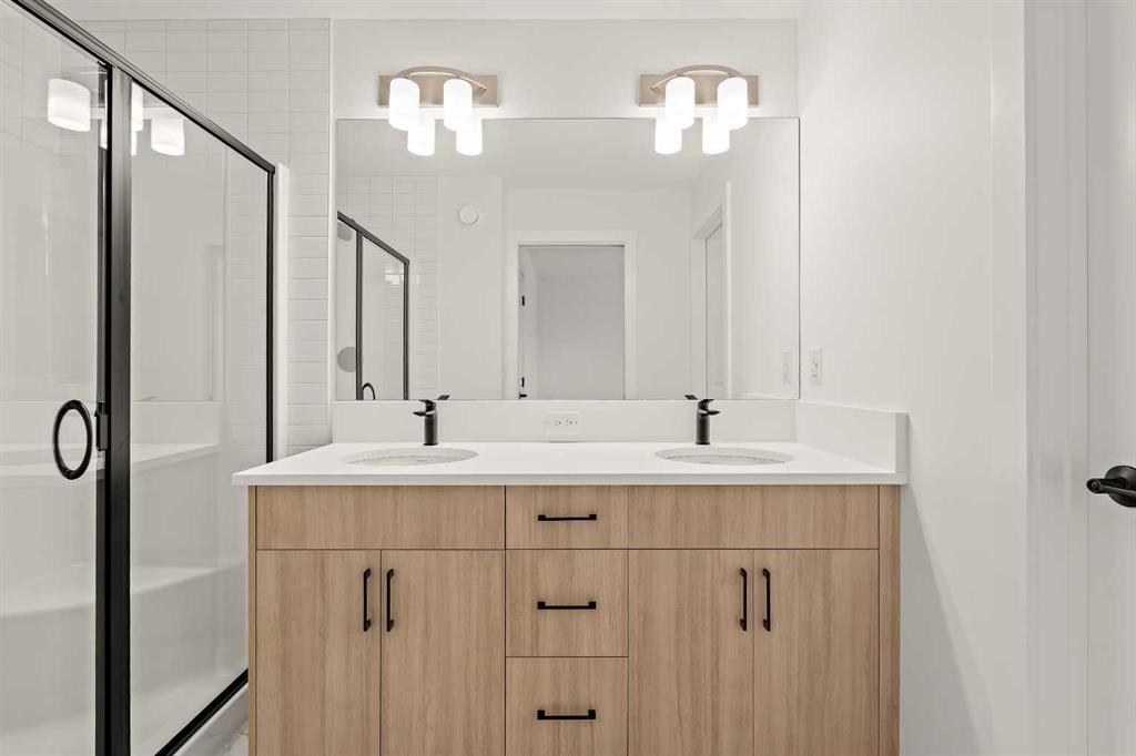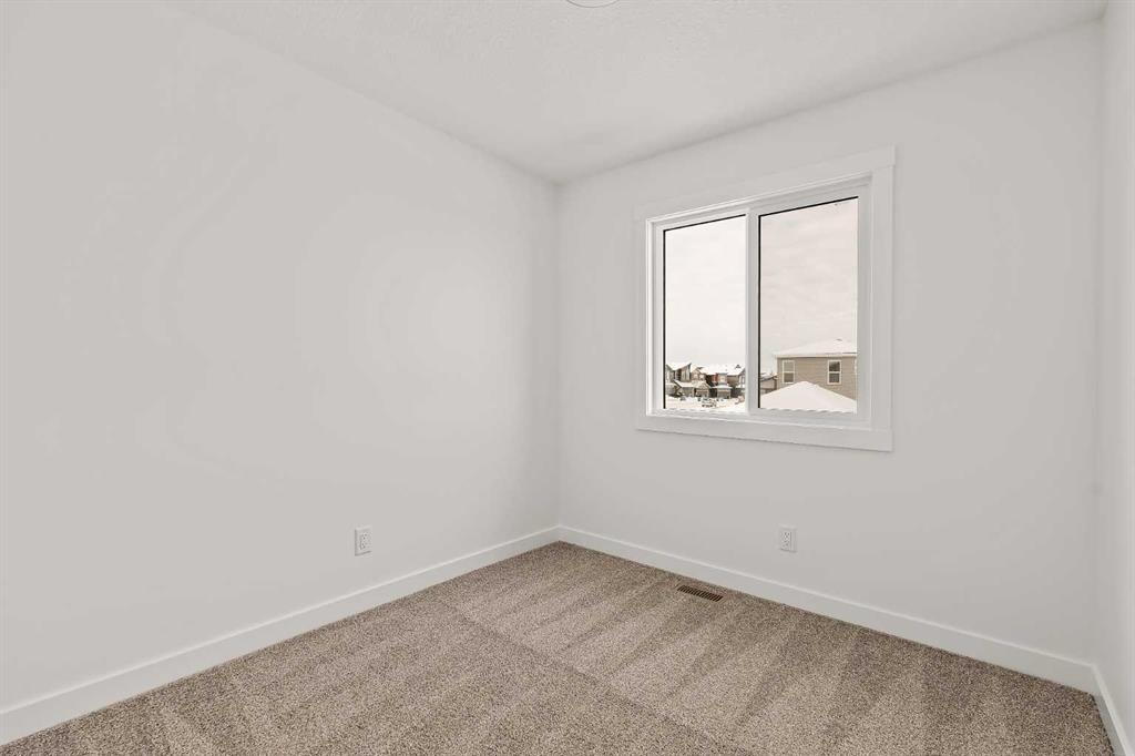 Discover the comfort and ease of modern living in this beautifully crafted Wicklow model by Brookfield Residential, perfectly placed in the vibrant community of Livingston and ready for immediate possession. Thoughtful design and smart use of space define this nearly 1,700 sq. ft. home, offering 3 bedrooms, 2.5 bathrooms, an undeveloped basement with a separate side entrance, and a private single garage with an added parking pad. The main floor welcomes you with 9' ceilings that create an open, airy feel from room to room. The kitchen is both stylish and functional, featuring a built-in chimney hood fan, built-in microwave, and plenty of counter space for cooking and gathering. It flows effortlessly into the dining area, where patio doors extend your living space to the backyard, ideal for future summer evenings and weekend barbecues. At the front of the home, the bright great room showcases large windows that bathe the space in natural light, offering a warm and inviting setting for everyday relaxation. Upstairs, the layout has been designed with balance in mind. A central bonus room sits between the primary suite and the additional bedrooms, giving everyone a little more breathing room. The primary suite includes a generous walk-in closet and a polished 4-piece ensuite with dual sinks and a walk-in shower. Two additional bedrooms, a full bathroom, and a conveniently located laundry room complete the upper level with ease. The basement has direct access via a side entrance and is undeveloped but includes rough-ins for easy developemnt. Outside, the backyard leads to your single detached garage and extra parking pad, offering practical solutions for storage, vehicles, and guests. Peace of mind comes standard with coverage from both Brookfield’s builder warranty and Alberta New Home Warranty. If you’re looking for a fresh, well-planned home in a growing, amenity-rich neighbourhood, this Wicklow model brings comfort, style, and everyday functionality together in one appealing package.