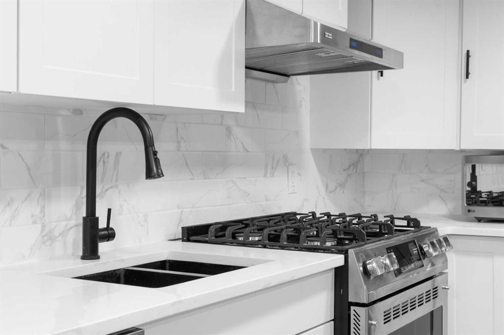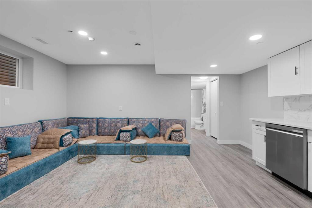 The legal basement suite offers a self-contained living space with a separate entrance. The bright suite includes a modern white kitchen with stainless steel appliances, a four-piece bathroom, and a bedroom. A bonus feature of the suite is its own furnace, allowing for ultimate climate control. Another bonus, a fire suppression system throughout the home, which will help with insurance costs!
