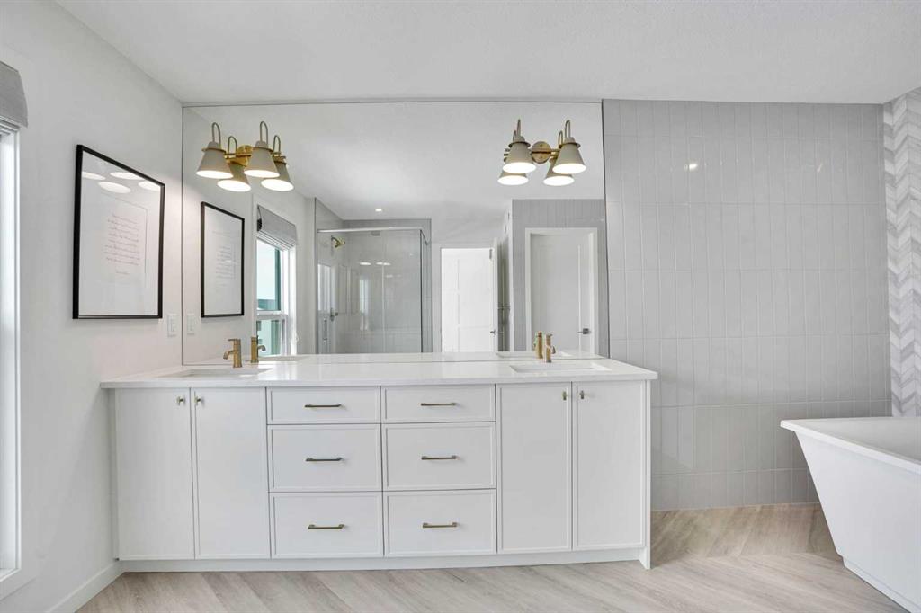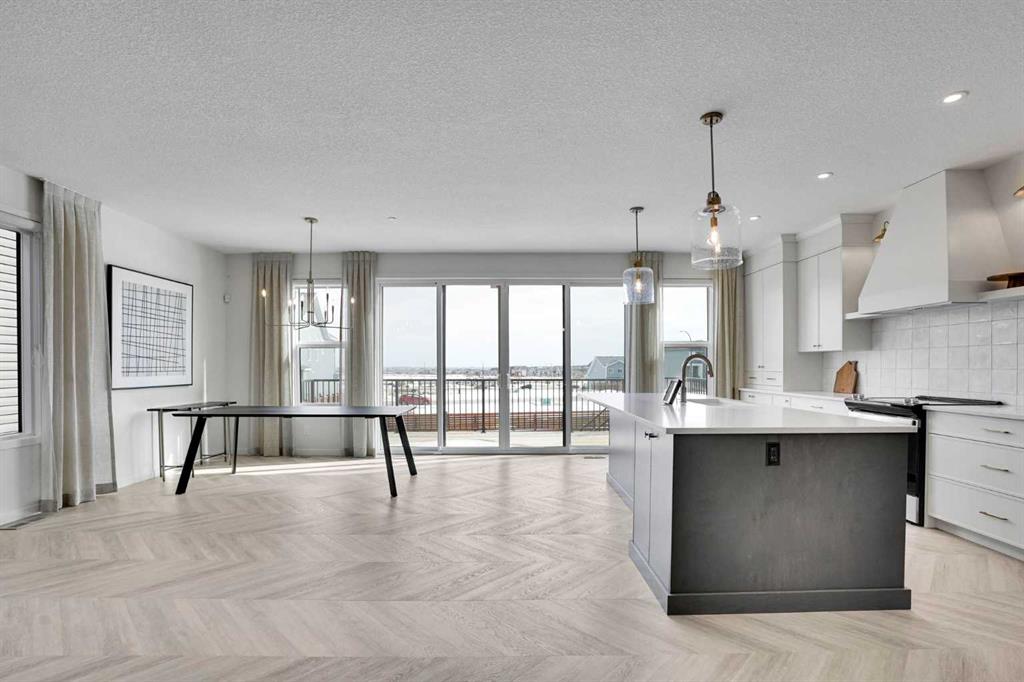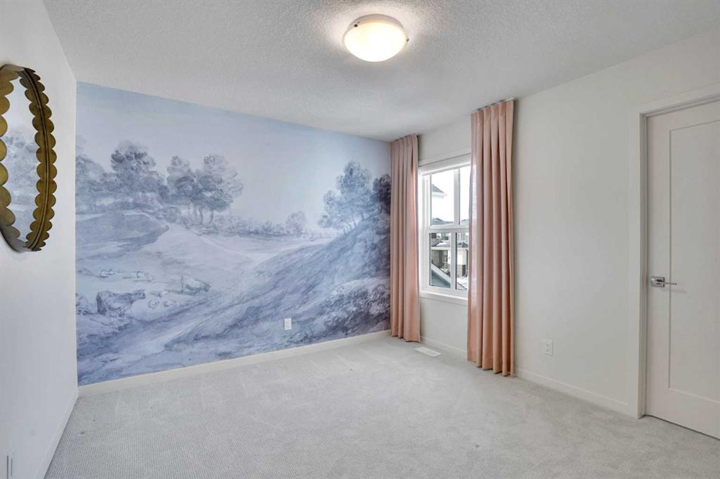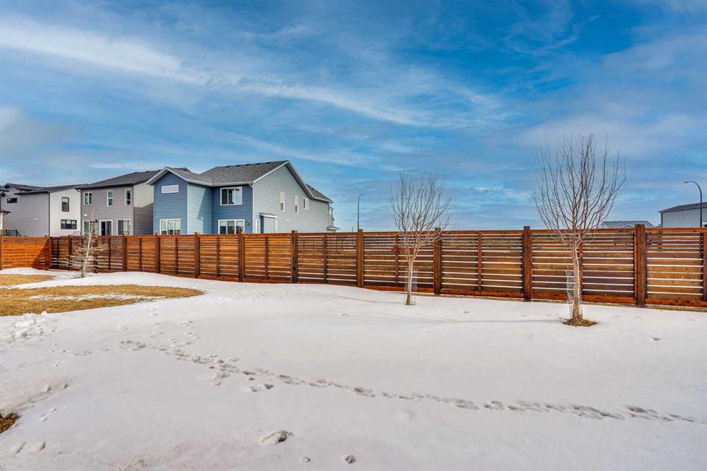 Nestled in the vibrant and family-friendly community of Livingston, this stunning former show home built by Cedarglen Homes has never been lived in and showcases exceptional craftsmanship, high-end upgrades, and thoughtful design throughout. Step inside to discover a bright open-concept main floor featuring soaring 8’ interior doors, luxury vinyl plank flooring, and elegant finishes that create a warm yet sophisticated atmosphere. Huge windows throughout the open-concept living space bring in an abundance of natural sunlight, creating a bright and welcoming environment. The inviting living room features a beautiful vertical shiplap feature wall with a tiled electric fireplace, blending modern style with cozy comfort. The chef-inspired kitchen is both functional and impressive with quartz countertops, two-tone cabinetry, a large central island, and in addition to the main kitchen, there is a separate spice kitchen that provides extra prep and cooking space. The dining nook opens onto an oversized deck, perfect for summer BBQs, entertaining guests, or relaxing outdoors. A main floor bedroom and full bathroom provide flexibility for guests, a home office, or multi-generational living. Upstairs, the primary retreat offers a spa-inspired ensuite with a custom tiled shower, soaker tub with tile ledges, dual sinks, quartz countertops, and a spacious walk-in closet, while three additional generously sized bedrooms provide plenty of space for family or guests. The upper level also includes a convenient laundry room and a beautiful, cozy bonus room ideal for relaxing or spending time with family. Every detail of this home reflects quality and thoughtful upgrades, including upgraded lighting, designer hardware, and an installed security system. Outside, enjoy the completed oversized deck while taking in the peaceful surroundings of Livingston. Residents also enjoy access to the impressive Livingston Hub, a state-of-the-art facility featuring a skating rink, splash park, gymnasium, tennis courts, and event spaces, along with numerous parks, playgrounds, and pathways throughout the neighbourhood, with convenient access to Stoney Trail and Deerfoot Trail for easy commuting. Move-in ready and never lived in, this exceptional show home offers the perfect combination of designer elegance, everyday functionality, and outstanding value.