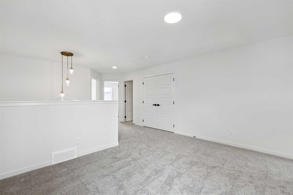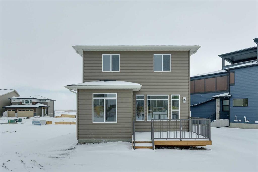Welcome to this beautifully upgraded home offering 1,860 sq. ft. of thoughtfully designed living space, complete with a bonus room, double attached garage, and desirable SW-facing backyard. The main floor features durable vinyl plank flooring, a convenient half bathroom, and a bright open-concept layout ideal for everyday living and entertaining. The spacious living room is highlighted by an electric fireplace, creating a warm and inviting atmosphere. The kitchen is a standout with a large island with quartz countertops, a pantry, white cabinetry accented with gold door handles, and a champagne bronze pull-down faucet. Premium appliances include a French door refrigerator, gas range, built-in microwave, and chimney-style hood fan, while pot lights enhance the space. An upgraded railing adds a modern touch to the main living area. Step outside to the 13' x 10' deck with a gas line for BBQ, perfect for enjoying the southwest-facing backyard. Upstairs offers a versatile bonus room, three bedrooms, and a dedicated laundry area. The primary bedroom features a spacious 5-piece ensuite with double sinks, a stand-up shower with glass door, and a relaxing bathtub. A 4-piece bathroom serves the additional bedrooms. The 9’ foundation and separate side entrance provide excellent flexibility, while the basement is roughed in for a future suite (a secondary suite would be subject to approval and permitting by the city/municipality). Additional highlights include matte black hardware throughout the home, carpet on the upper level for comfort, and a driveway in addition to the double attached garage. Livingston residents enjoy access to an HOA clubhouse featuring a gymnasium, tennis courts, a splash park, and year-round programming, along with quick access to major routes for easy commuting across the city. This home combines modern finishes, functional design, and future development potential in one impressive package.