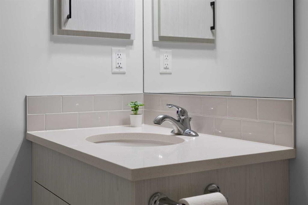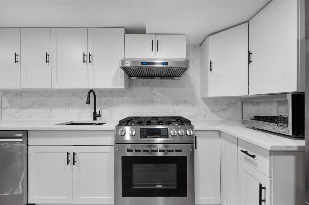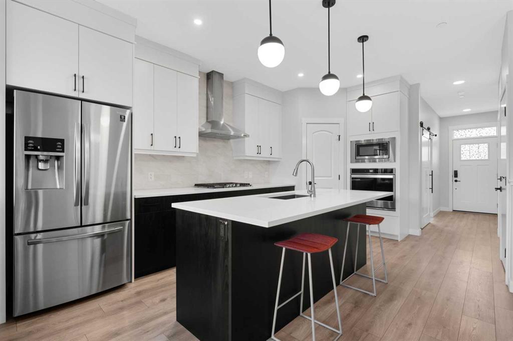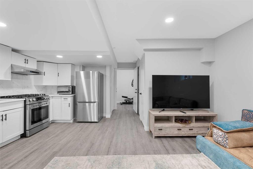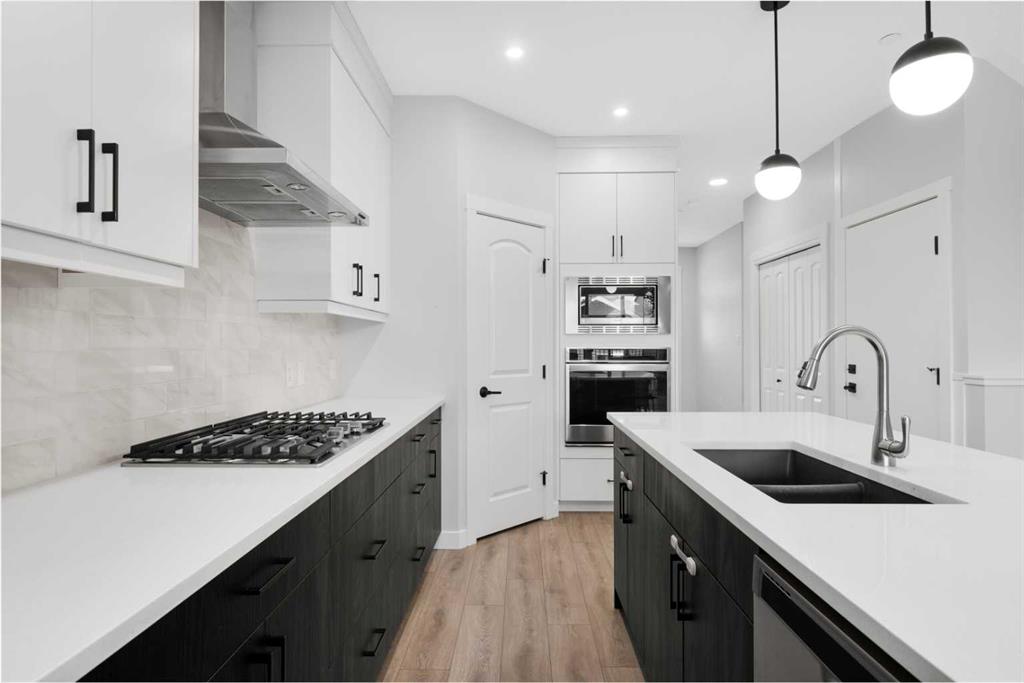 The legal basement suite offers a self-contained living space with a separate entrance. The bright suite includes a modern white kitchen with stainless steel appliances, a four-piece bathroom, and a bedroom. A bonus feature of the suite is its own furnace, allowing for ultimate climate control. Another bonus, a fire suppression system throughout the home, which will help with insurance costs!