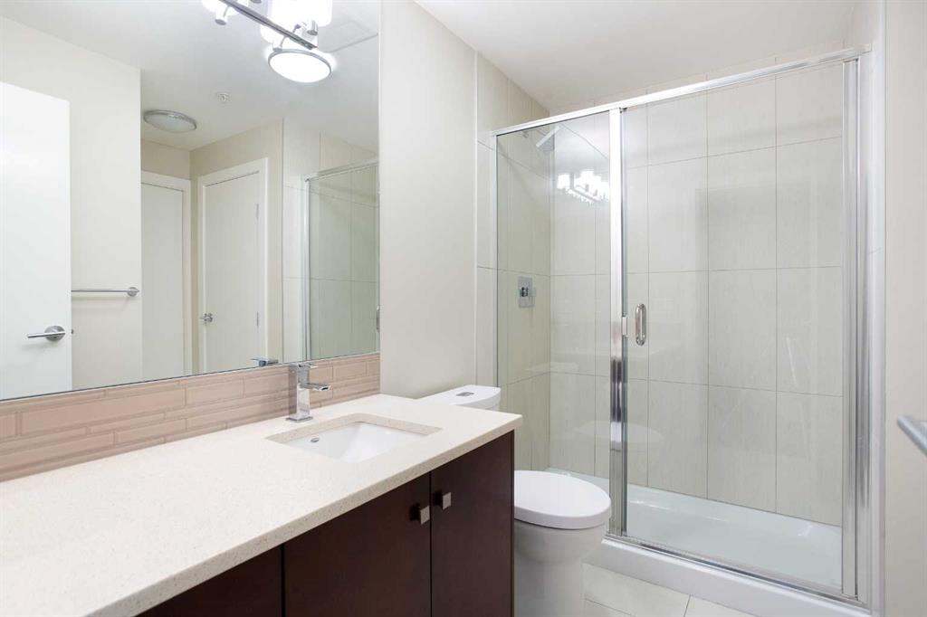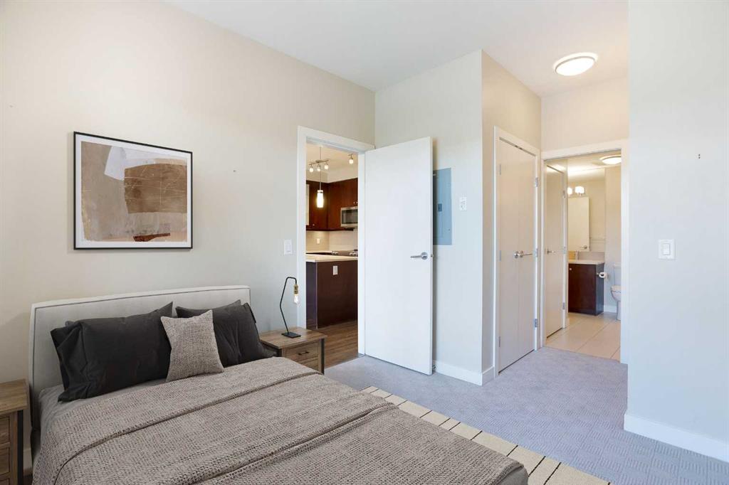 9FT CEILINGS | HEATED FLOORS | GREAT LOCATION | Welcome to Ten Mount Royal, a 47 unit building in the heart of Mount Royal with excellent access to shopping and amenities nearby. This spacious unit offers 2 bedrooms with their own ensuite bathrooms and large closets. Main entry is a separate well thought out space for guests to arrive before they access the main living area. The kitchen offers ample countertop and cupboard space, soft close drawers, under cabinet lighting, quartz countertops and stainless steel appliances, including a built in Bar fridge. Primary bedroom closet leads you into The west exposure provides ample natural light in the unit creating a bright and inviting living space. Step out onto the balcony complete with gas hookup, providing a nice sunny space for BBQing in the summer! Titled parking in the underground heated parking as well as separate locked storage room with a storage cage. This location is excellent for accessing downtown and all the restaurants and shops nearby and is very walkable for those who prefer to commute by foot. Book your viewing of this great unit today