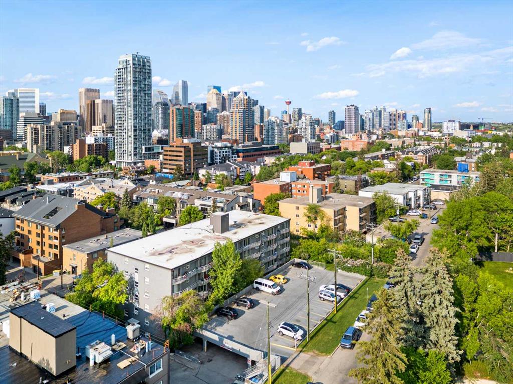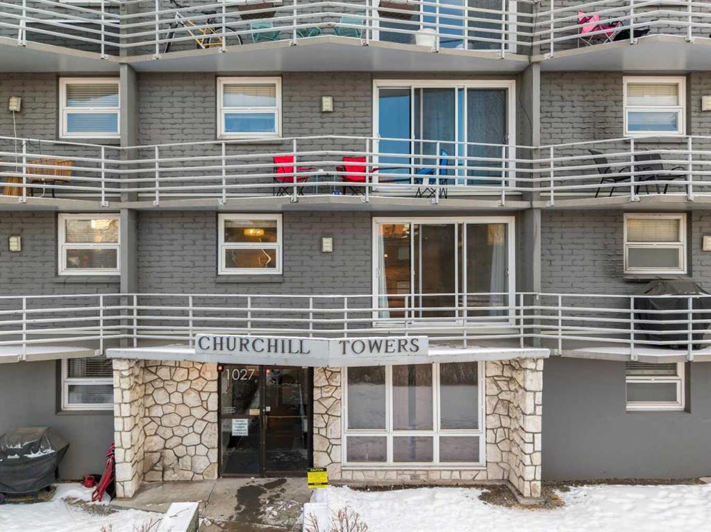 Located in the heart of Lower Mount Royal, this turn-key residence is the perfect live-in or rent-out investment as it has been gorgeously remodelled, is in a concrete building with low condo fees, showcases downtown views and is perfectly located just steps to the beltline! Step inside to your gorgeous renovation, as this unit has been exquisitely remodeled and promises to leave a lasting impression! From the moment you walk in, you will be captivated by the opulent finishes and premium selections offered in this home. The lavish renovation is inclusive of everything: new engineered hardwood, trim, doors, paint, hardware, potlights, light fixtures, appliances and of course you will love the luxurious details in the brand-new kitchen and bathroom! The gourmet kitchen is striking now that it has been opened up from its original closed off design and features timeless white cabinets elevated with transom details. The kitchen showcases granite countertops featuring a lavish waterfall edge, professional appliances, designer lighting – and a rare perk for a condo in this complex – in suite laundry! The European style washer/dryer is a coveted feature – as most units in the complex have to use the shared laundry room where you pay per use. The island is the perfect space for entertaining or cooking and opens onto an intimate dining area – they don’t make condos this spacious anymore! Your expansive family room is so impressive, and it has enough space to accommodate an in-home office too, plus it is adorned with natural light from the floor to ceiling patio windows that accesses your beautiful balcony facing downtown. Yes, the view is included as many units in this price range face a parking lot! Your primary retreat can fit a king-sized bed and sits adjacent to your re-designed four-piece bath featuring an extended vanity and granite countertops. Please note that the unit has a front hall closet, ample bedroom closet, linen closet, and a storage room RIGHT beside the unit door. This unit is located in Churchill towers which is a well-maintained concrete building with a healthy reserve fund and recent building renovations (new elevator 2010, boilers 2015, renovated lobby 2012, & a security system). This location is within steps of Urban Fare (groceries), Goodlife Fitness, 17th Avenue restaurants/shopping, Canadian Tire, Shoppers Drug Mart, Stampede, Saddledome and the parks and paths surrounding elbow river. A perfect investment property that can be a part of this buildings managed rental pool so you can sit back and have someone take care of the tenants for you. There is street parking around and outdoor stalls available for rent (it is a waitlist system). This residence offers exceptional value – book your private viewing today!