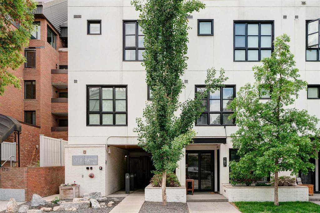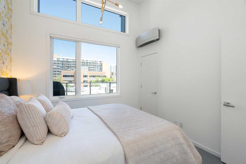 Welcome to The Block, one of Calgary’s most architecturally distinctive communities just off vibrant 17th Avenue. Designed by Sturgess Architecture and built by Avi Urban, this boutique development is known for its rare private courtyard concept — each residence opens directly to the outdoors, creating a sense of community, privacy, and independence that’s truly unmatched in the downtown core.This top-floor penthouse loft is one of the most desirable suites in the complex. Soaring 14’ vaulted ceilings and hardwood floors throughout create an airy, dramatic living space, while massive windows flood the home with natural light. A custom wall of built-ins anchors the living room with both style and functionality. The sleek kitchen features stainless steel appliances, lacquered cabinetry, and generous storage — perfect for both everyday living and entertaining. Step out onto your private deck with city views, complete with gas access for easy BBQ evenings. The spacious primary bedroom offers large windows and convenient access to a beautifully appointed bathroom with walk-in glass shower and modern vanity. The second bedroom is thoughtfully designed with a full wall of built-in storage, making it ideal for guests, a home office, or both. Complete with titled parking, additional storage, built-in laundry, and air conditioning, this is effortless urban living at its finest. Now offered at a significantly improved price, this penthouse represents outstanding value in one of Calgary’s most dynamic inner-city locations. Don’t miss your opportunity to experience The Block at its very best.