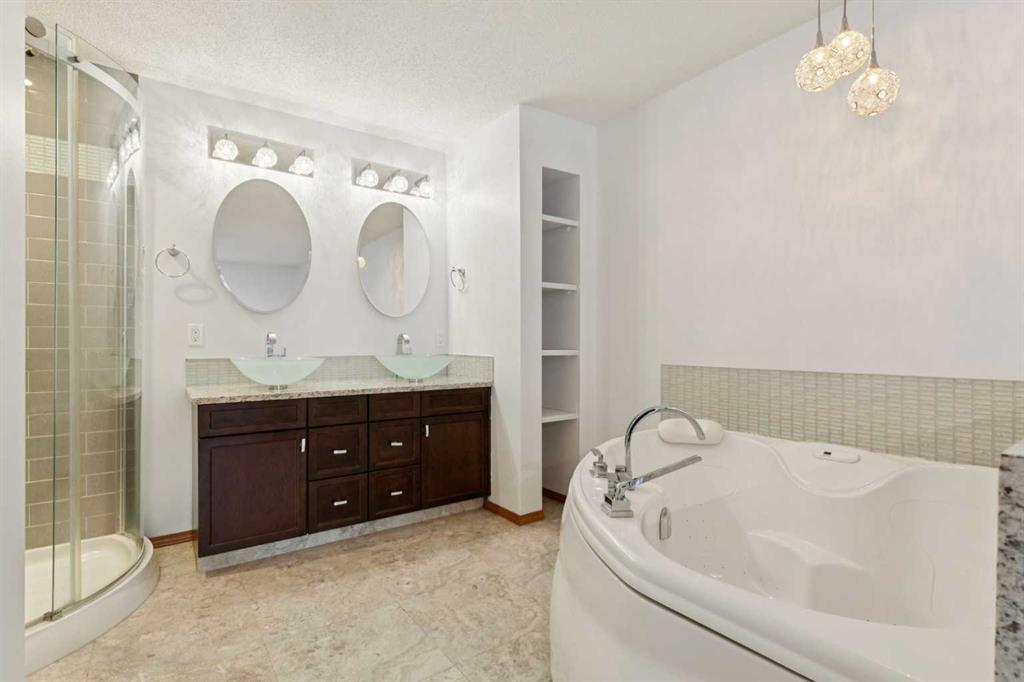 Perched majestically on the ridge in MacEwan Glen, this remarkable home exudes charm and elegance in every detail. Boasting over 3,000 Sq/ft of luxurious living space, a picturesque walk-out basement, and a grand 9,000 Sq/ft lot, it is truly a dream retreat. The main level welcomes you with a beautifully upgraded kitchen, cozy living spaces, and a stunning double-sided fireplace. Upstairs, four spacious bedrooms, including two opulent primary suites, offer comfort and tranquility. The charming walk-out basement provides the perfect setting for relaxation or entertainment, while the enchanting backyard features lush gardens, a cozy fire pit, and serene decks for outdoor living at its best. Nestled near Nose Hill Park, this home offers a serene escape with breathtaking views. Don't miss the chance to own this enchanting property. Schedule your private viewing today and let the magic begin.