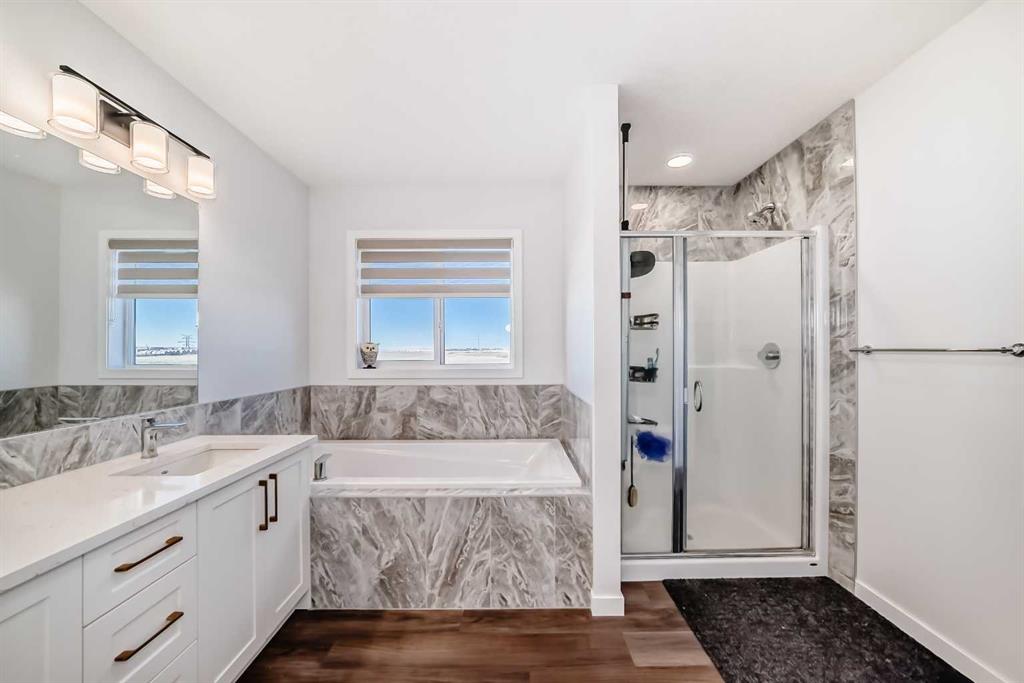 Priced to sell. Huge price reduction. Step into modern elegance in the heart of Mahogany, Calgary’s premier lake community! This beautifully crafted 2-storey home blends luxury finishes with everyday comfort, offering over 2,250 sq. ft. of stylish living space. The main floor welcomes you with an inviting open layout, where the designer kitchen shines with built-in stainless appliances, a gas range, ceiling-height cabinetry, and a spacious quartz island perfect for family gatherings. A walk-through pantry, main floor office, and sleek open railings add both function and flair. Upstairs, you will find three large bedrooms including a serene primary retreat with a spa-inspired ensuite featuring a deep soaker tub and oversized shower. Both secondary bedrooms include walk-in closets, while the convenient upper-level laundry makes daily living a breeze. The basement awaits your creative touch with 9-ft ceilings and rough-in for a future bathroom. Outside, enjoy a fenced and landscaped backyard with stone accents and no neighbours behind. Enjoy lake access privileges with four-season lake living and just minutes from Mahogany Lake, parks, playgrounds, South Health Campus and YMCA. Easy access to 88 Street and stoney Trail ensures a smooth commute to any part of the city. Quick possession available!
