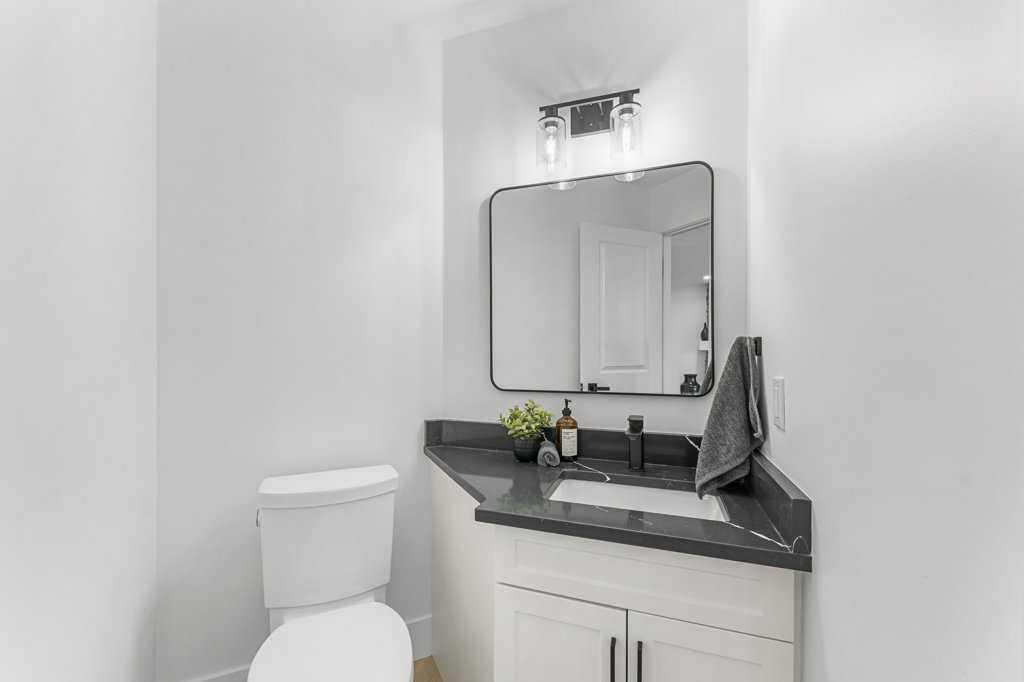 Inside, you are immediately enveloped by the home’s light and airy ambiance, accentuated by soaring ceilings, expansive windows, and a fresh, neutral palette. Every detail has been thoughtfully curated—from the modern black spindles and designer lighting to the elegant hardware and timeless finishes. The showpiece kitchen blends form and function with sleek quartz countertops, high-end stainless steel appliances, crisp white cabinetry, and a large breakfast bar that flows effortlessly into the dining area and cozy family room with a stunning gas fireplace.