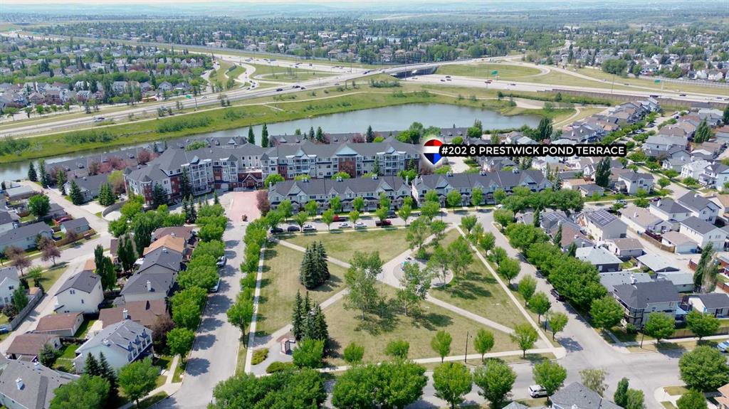 Open House! Sunday, November 9th, 2025, from 1:00 PM to 4:00 PM. Stunning 2 bed 2 bath CORNER unit in beautiful McKenzie Towne – Welcome home to 202 - 8 Prestwick Pond Terrace. This unit has been impeccably maintained in the sought-after Caledonia on the Waterfront complex. The open-concept living space welcomes with plenty of natural light and neutral colors. The well-designed kitchen features granite countertops, maple cabinetry & center island with seating overlooking the spacious living area and new luxury vinyl plank flooring. The adjacent dining area is framed by bay windows & offers access to the private outdoor balcony. The primary bedroom is generously sized, featuring a 4-piece ensuite bathroom and a walk-in closet with new carpet. A second bedroom, 3-piece bathroom with walk-in shower, and enclosed laundry complete the space. Additional building amenities include a quiet, pet-friendly complex, secure underground parking, and common living/dining/kitchen/library – perfect for gathering with family & friends. This prime location means you can walk to incredible dining & shopping, minutes to 130th Ave amenities, and easy access throughout the city on nearby Deerfoot & Stoney Trail. Enjoy the beautiful pond right outside, as well as walking and biking on local pathways. Book your viewing today!