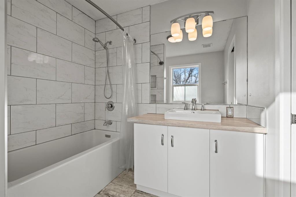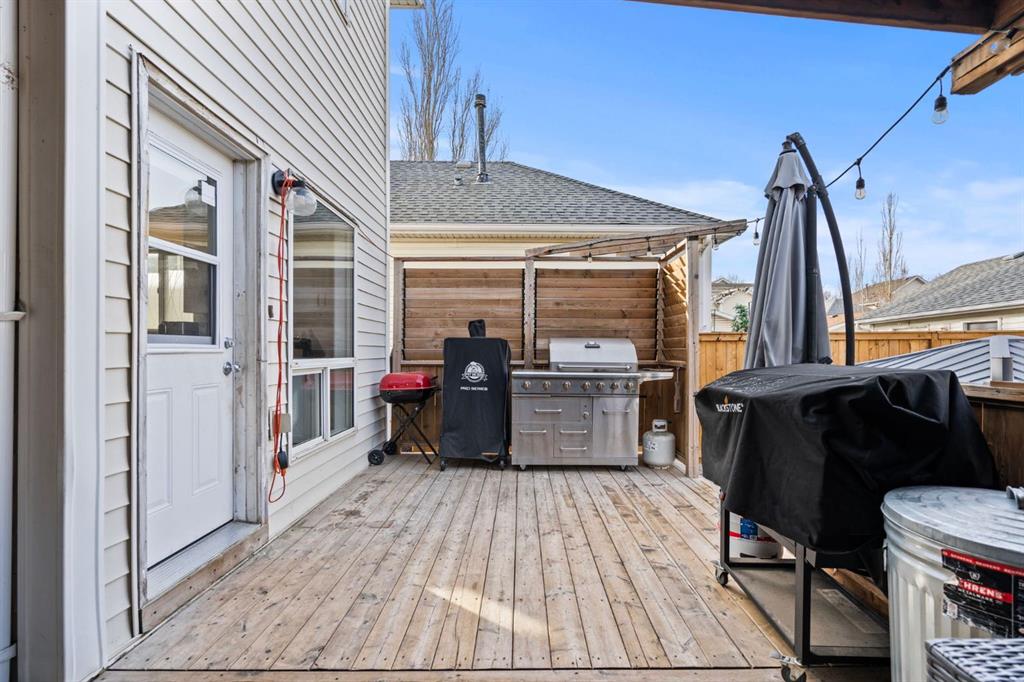 This home is perfectly situated on a tree lined street in the highly sought after community of Mckenzie Towne. As you approach you will notice the great curb appeal, with a welcoming front porch and a fully fenced front and backyard. The main floor offers a functional floorplan with fresh paint, and durable new hard surface flooring throughout. A redone gourmet kitchen is a focal point with timeless white cabinets that reach to the ceiling, an expansive island with waterfall counter and a corner pantry for additional storage. This looks onto a spacious dining room accented by a gas fireplace. Adjacent is the large living room. Off the back of the home is a full width deck, large green space including firepit, a hot tub and a detached double garage. As you head to the upper level you will notice the contemporary railing and new carpet. There are two well sized bedrooms, an updated 4pc bath, and the primary with a gorgeous redone ensuite plus walk in closet. The spa inspired ensuite has a large soaker tub shower combo, separate sink and makeup area. The fully completed lower level has a 3 pc bath and expansive rec room/ gym. This home has a lot to offer and is a must see. This home is the complete package—located close to parks, schools, transit, shopping, the path systems along the pond and the vibrant charm of McKenzie Towne’s High Street. Schedule your private tour today.