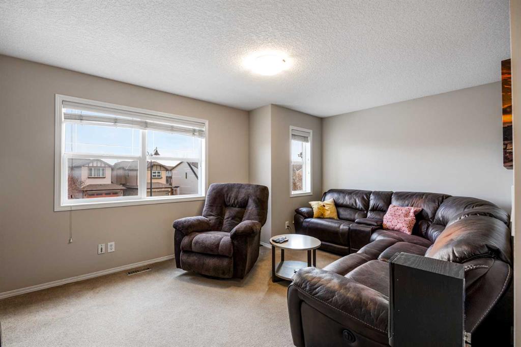 Do not miss this fantastic prospect in Calgary’s deep SE community of New Brighton. A move-in ready gem - two-storey, 2,100 sq. ft. of living space with 3 bedrooms, 3.5 baths, a front-facing, double, attached garage and tons of parking room for the family fleet. Lots of curb appeal because of the tasteful, well-maintained front and back lawns and mature bushes. The main level is open concept highlighting 9-foot ceilings and warm hardwood floors throughout. Massive windows flood the whole area in warm natural light. The living room is made even more inviting with a tiled gas fireplace. Patio doors in the dining room provide access to the deck and backyard. Sleek, modern, dark brown cabinets are featured in the kitchen along with stainless appliances, a corner pantry, granite countertops, tiled backsplash and a breakfast bar/island with deep under counter mounted double sinks. The main level is completed with a 2-pc. bath adjacent to a convenient laundry room. Up to the carpeted second floor, the primary bedroom is its own sanctuary with a 3-pc. walk through ensuite and substantial walk-in closet. Two additional bedrooms share a tiled 4-pc. bath. The finishing touch is a bonus, well-windowed room which could be utilized as a family room or home office. The lower carpeted level is fully developed with a rec room for family enjoyment, a 4-pc. bath and a utility/storage room. A gigantic south-west facing backyard is fully fenced to give you your own private outdoor retreat. A railed wooden deck allows you to expand your summer entertainment area. The yard would be a delight for gardeners and hobbyists with a green thumb. Location here is key with quick access to Deerfoot and Stoney Trails, 52nd Street SE and a Walmart Supercentre, additional shopping and restaurants on 130th Avenue SE, schools (public and Catholic), child care, playgrounds, transit, New Brighton Resident Association, New Brighton Central Park and the South Campus Health Centre. Don’t let this opportunity pass you by.