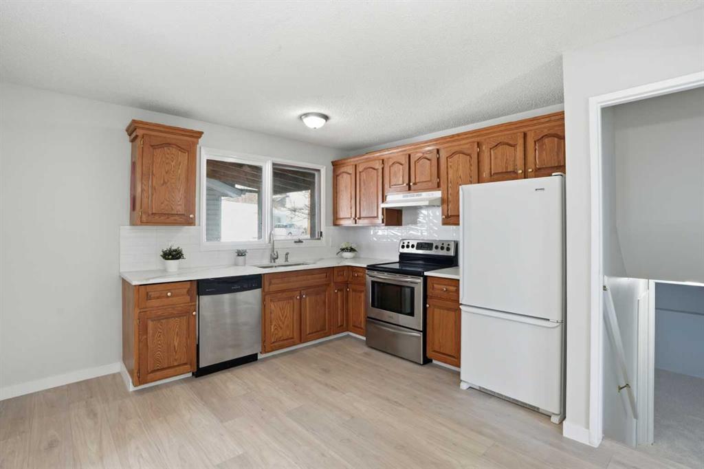 Beautifully renovated home with over 2300sqft of developed living space in the highly sought-after community of North Haven, ideally located on a quiet street with a lovely park view of Nosehill and Egert Park. This property features new flooring, quartz countertops, and fresh paint throughout, offering a move-in ready home. Situated on a spacious lot with 64’ frontage, this home offers an exceptional amount of living space with a total of five bedrooms across multiple levels—perfect for growing families or those needing extra room. The main floor includes a bright living room, formal dining area, and an eat-in kitchen. The third level features a cozy family room with a fireplace, an additional bedroom, and a full bathroom. The fourth level offers a large rumpus room and another bedroom—ideal for entertaining, with ample space for a pool table, games area, or home gym. Enjoy outdoor living on the large, covered and sheltered deck—perfect for year-round barbecuing and gatherings. The oversized 27’ x 23’ insulated garage and RV parking pad provide plenty of room for vehicles, storage, and toys. This is a fantastic opportunity to own a spacious, updated home in a prime location.